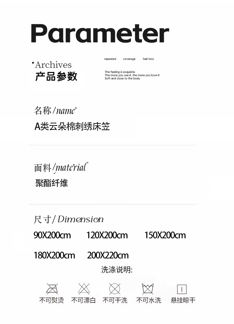 90x200cmA类云朵棉刺绣床笠