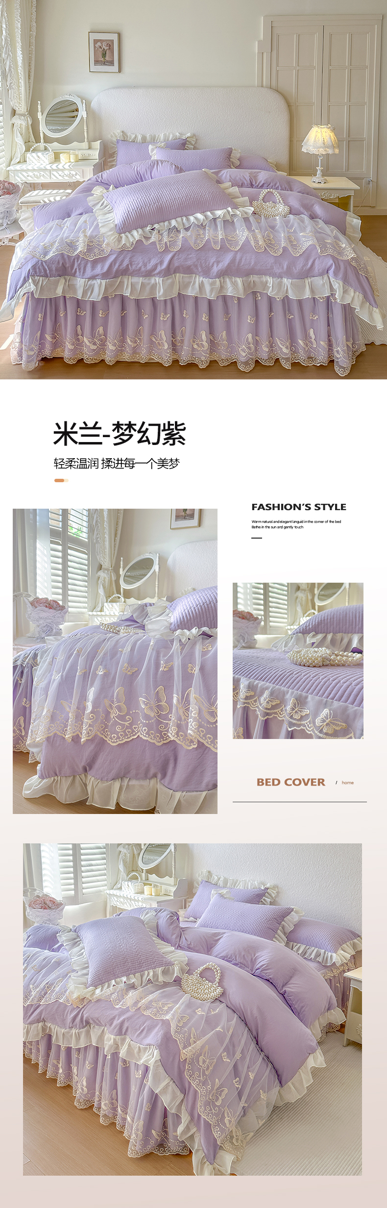 (总)瑞宝 2026新款泡芙棉花边床裙三件套-南法玫瑰,南法玫瑰-粉玉,南法玫瑰-雾蓝,南法玫瑰-奶茶色,南法玫瑰-奶油白,南法玫瑰-樱花粉,南法玫瑰-高级米,南法玫瑰-梦幻紫,南法玫瑰-抹茶绿