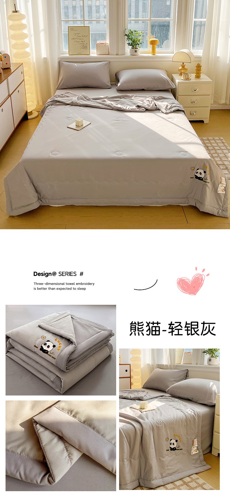 (总)易展家居 2025年新款水洗棉熊猫夏被,熊猫-奶昔白,熊猫-轻绿,熊猫-轻银粉,熊猫-轻银灰