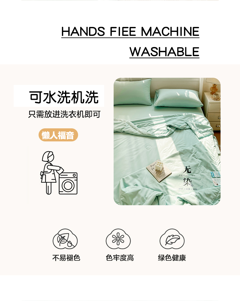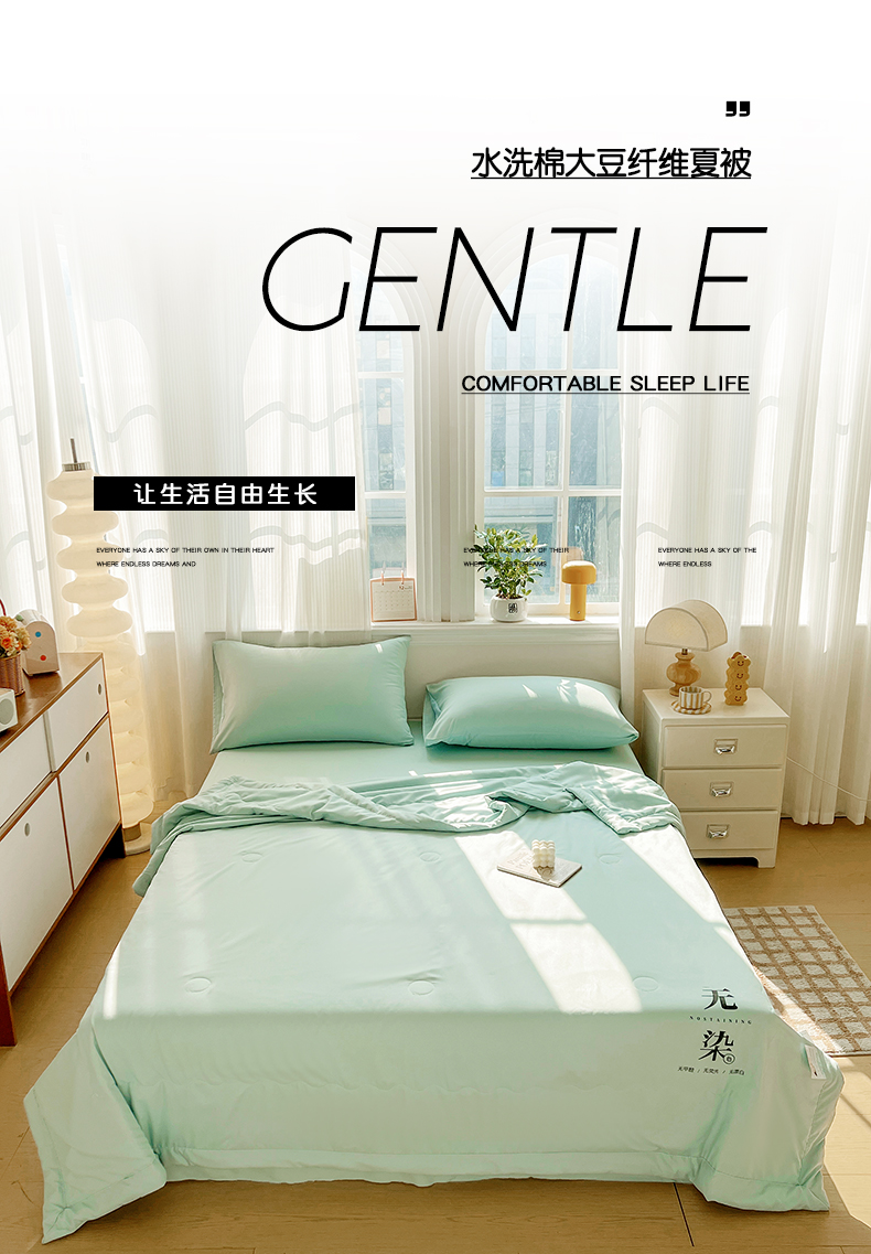 易展家居 2026新款水洗棉大豆纤维夏被-无染+熊猫 无染-奶昔绿