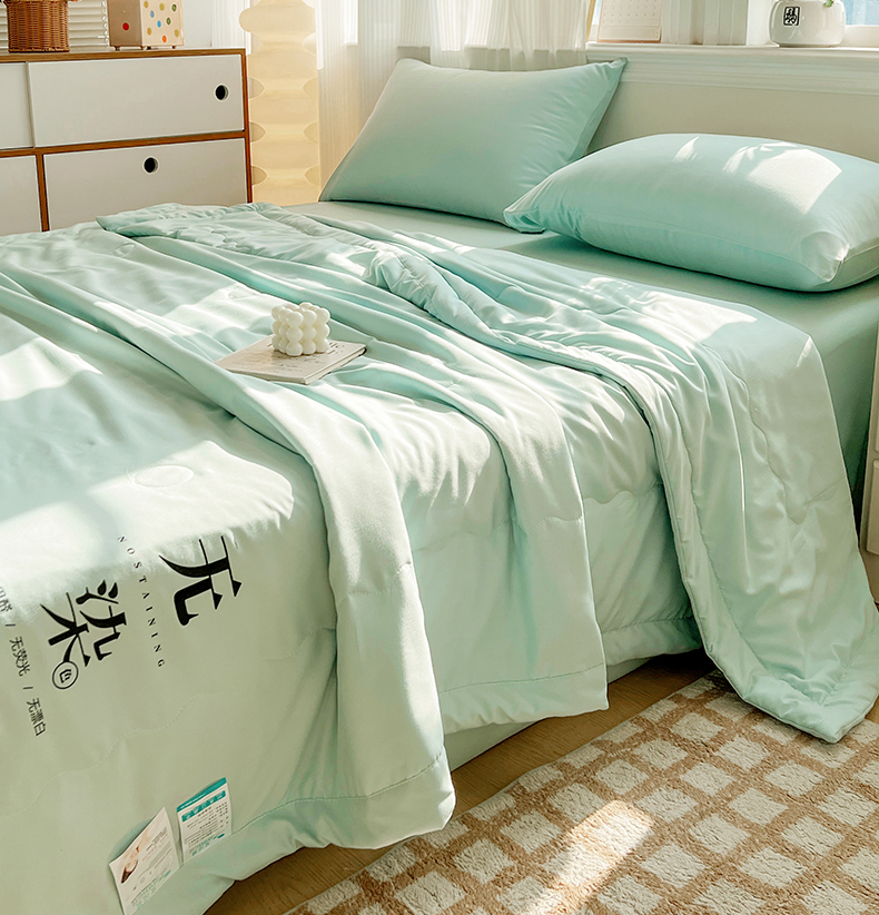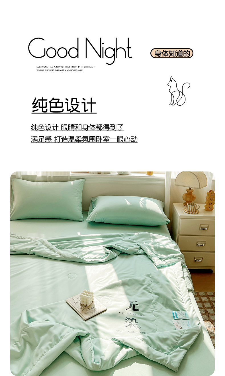 (总)易展家居 2025年新款水洗棉纯色夏被,薄荷绿,典雅白,高级灰,樱花粉
