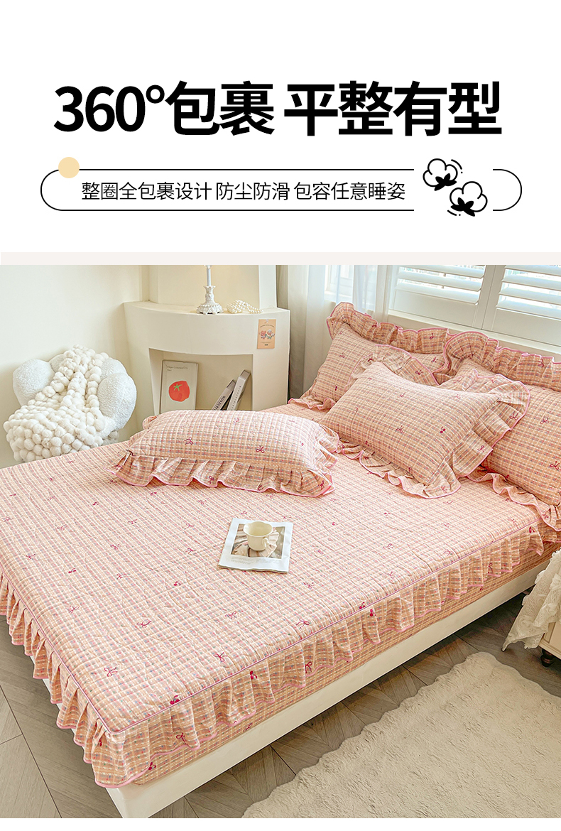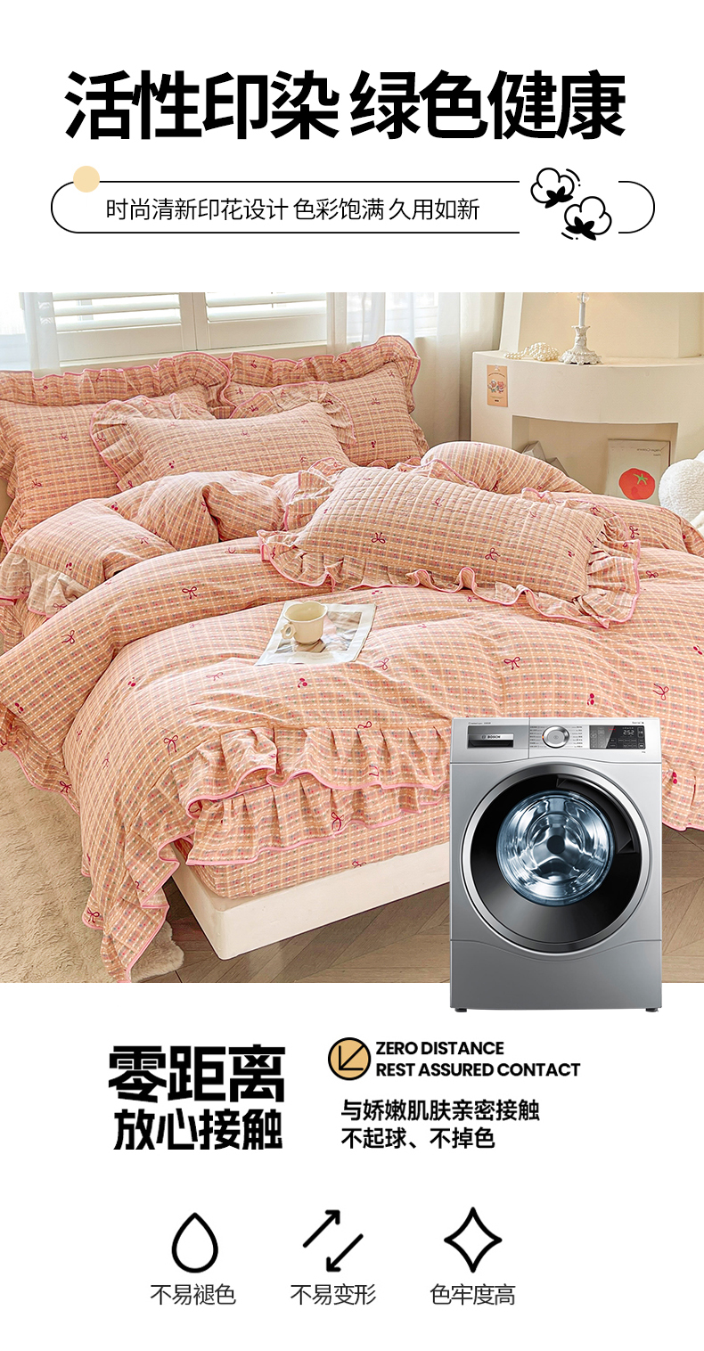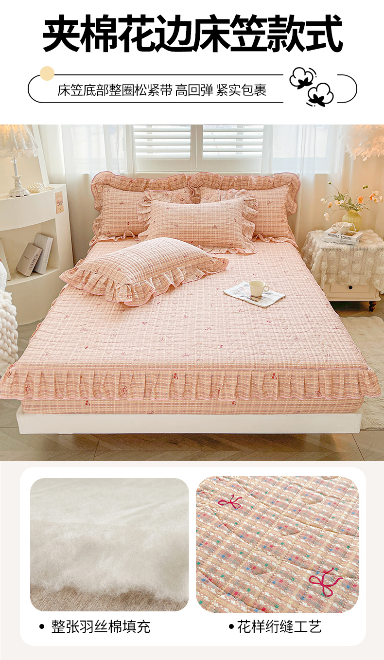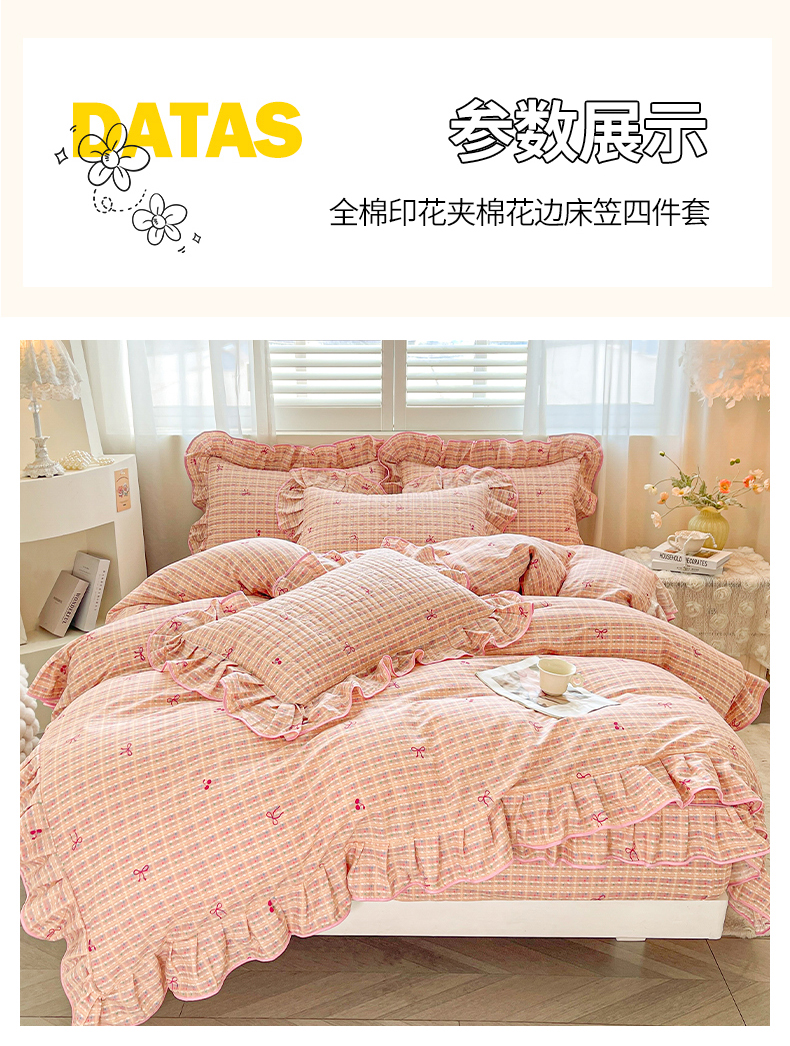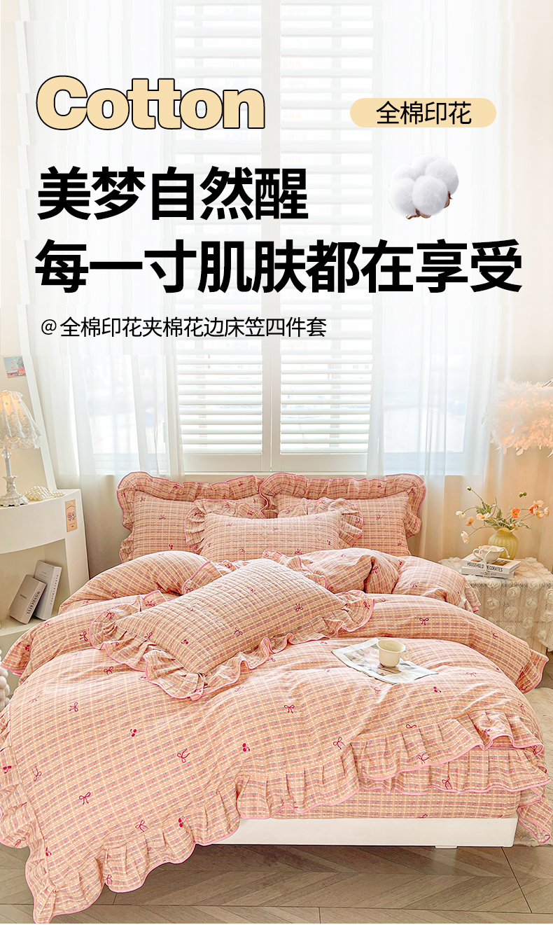 当前位置: 91家纺网 > 商品网购 > 床品套件 > 四件套 > 全棉普通四件套 > 宜凡家纺 2026新款全棉印花夹棉床笠四件套 樱桃蝴蝶结