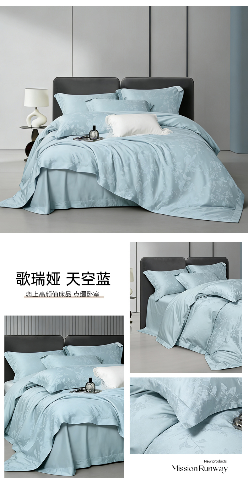 (总)栩裕纺织 2026新款天丝棉提花四件套,阿曼达 幻影灰,歌瑞娅 天空蓝,皓影 本白,花畔 轻罗灰,花畔-浆紫,罗兹 风情粉,曼德拉 优雅紫(详情页),芊雅 炫绿,嫣然 奢雅金