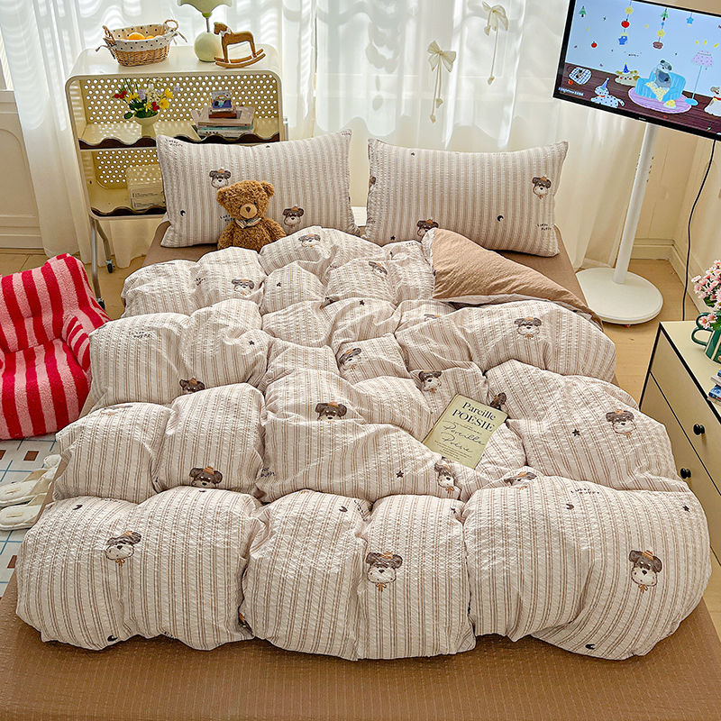 当前位置: 91家纺网 > 商品网购 > 床品套件 > 四件套 > 其它四件套 > 仟网汇 2026新款简单款泡芙纱印花四件套 木马甜心