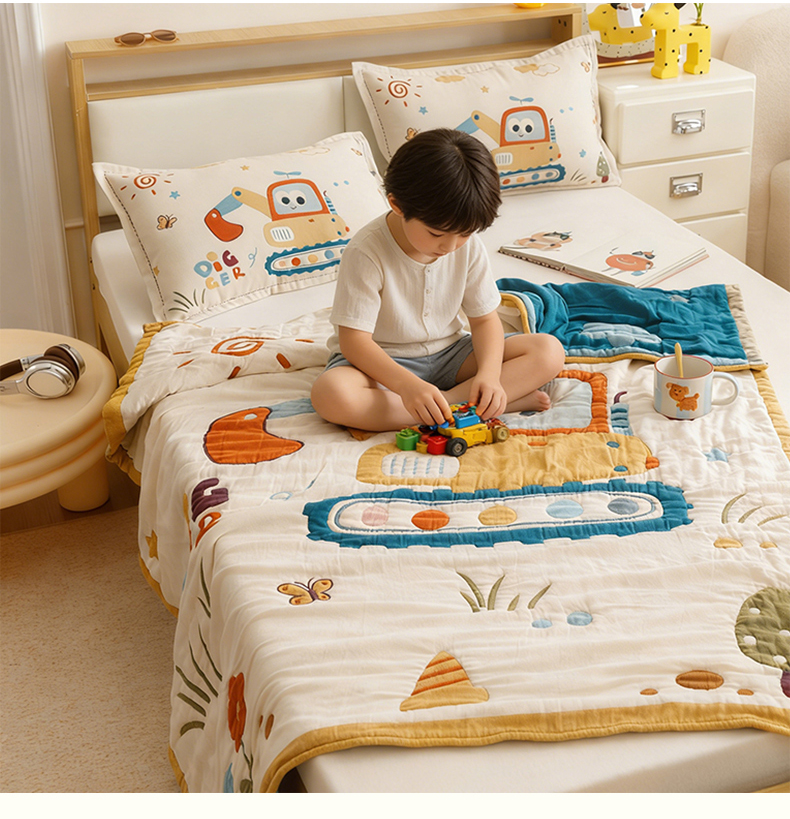 悦然毛巾被 2026新款全棉纱布儿童泡泡被夏被盖毯 花园小园丁