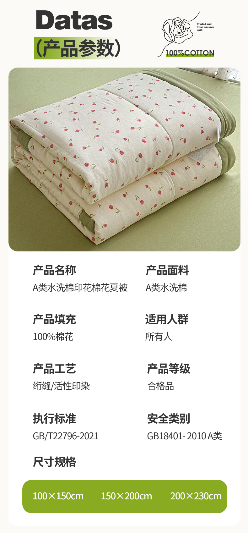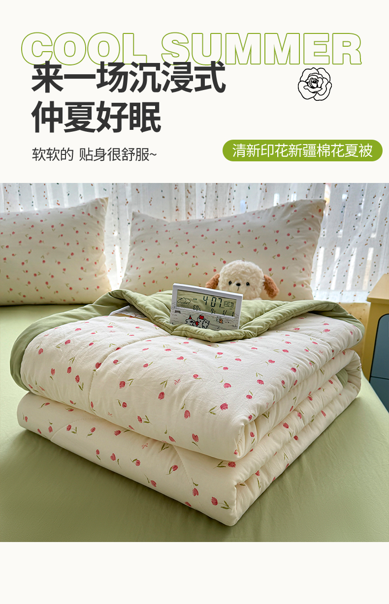 商品名称:尊妙被业 2026新款水洗棉棉花夏被100%新疆棉花填充包检测 浪漫花海