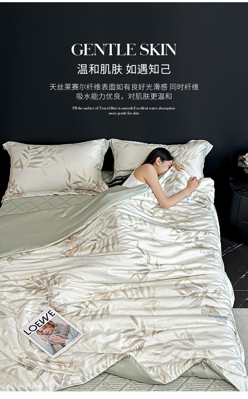 • 91家纺网 家纺一手货源 找家纺 吾诺家居 2026春夏新款数码印花莱赛尔天丝夏被夏凉被空调被-天印系列 绿色竹影