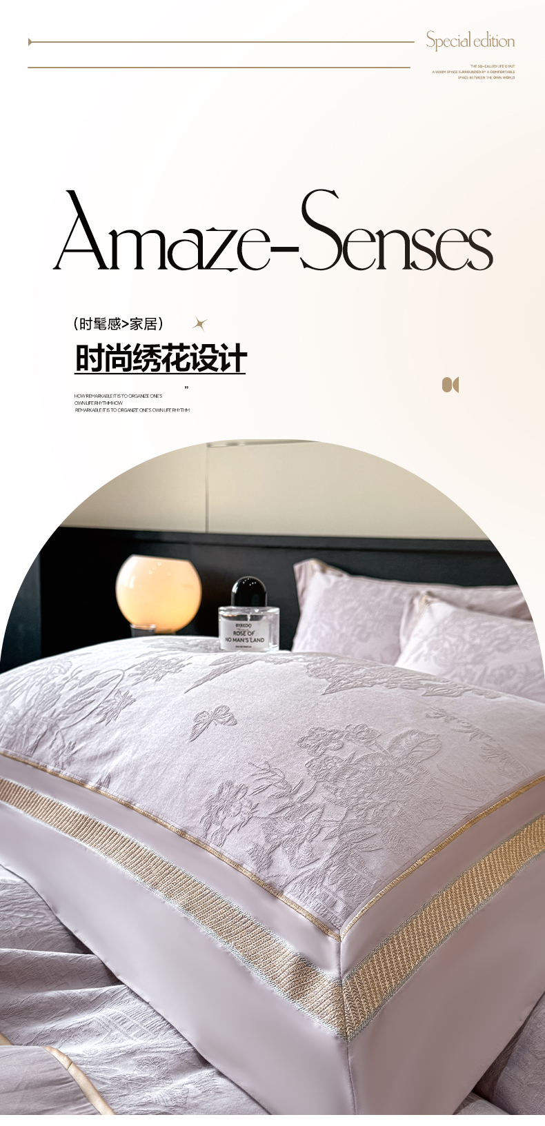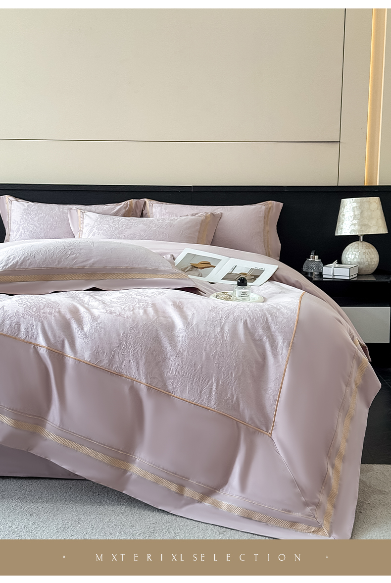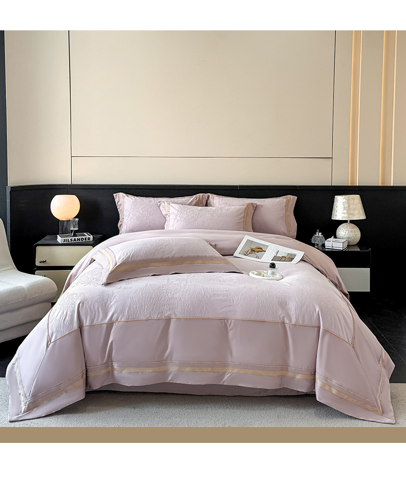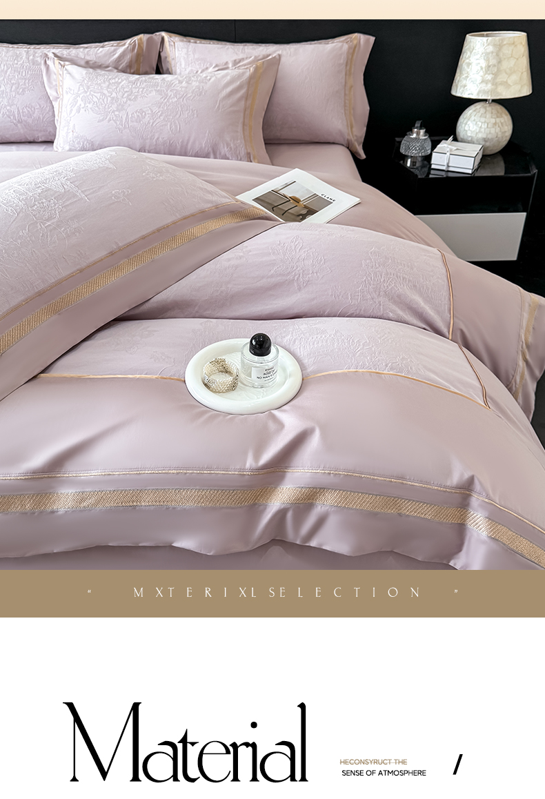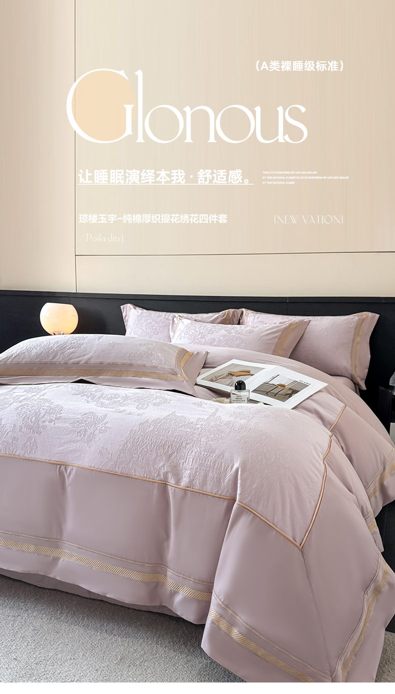 当前位置: 91家纺网 > 商品网购 > 床品套件 > 四件套 > 全棉普通四件套 > 博纳家纺 2026春夏新款60支全棉纯棉厚织提花绣花宽边高级简奢纯棉四件套-琼楼玉宇 琼楼玉宇-浅紫
