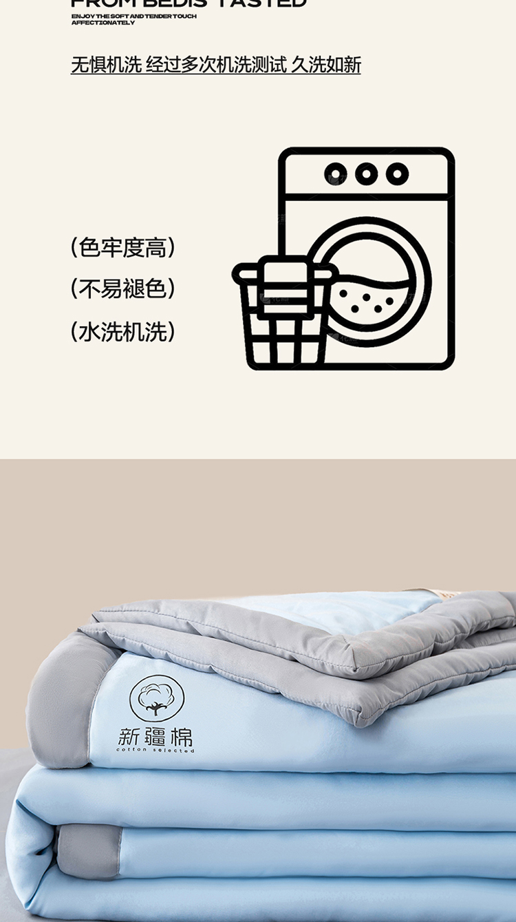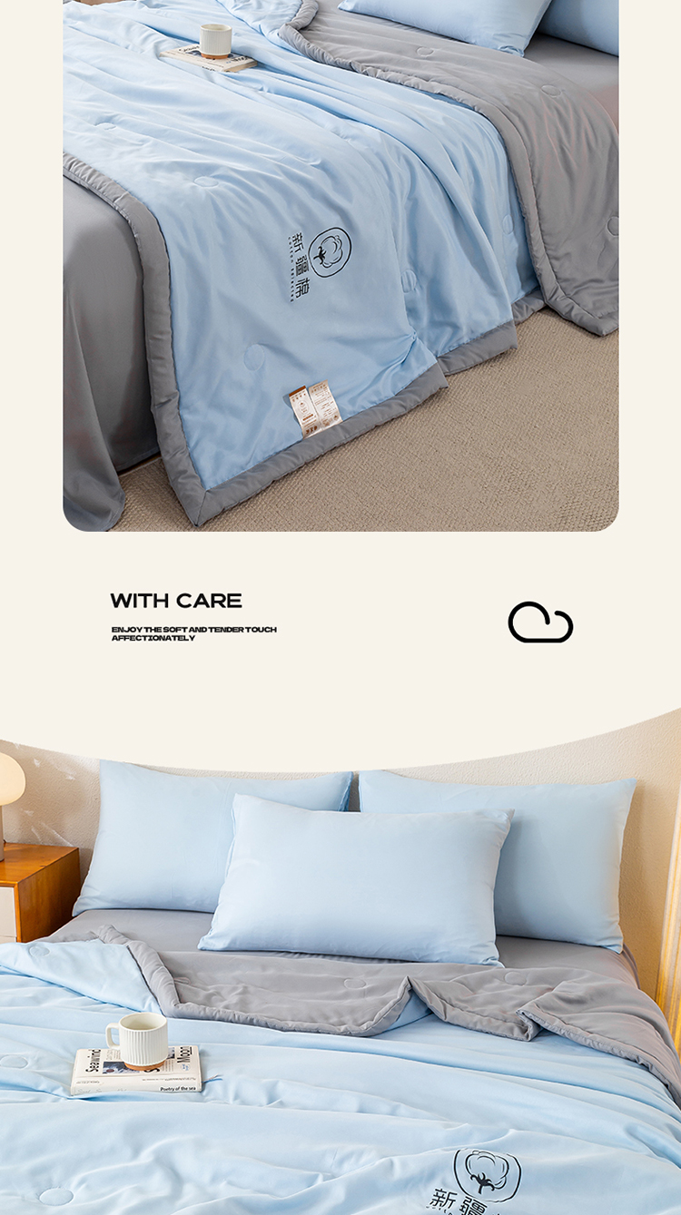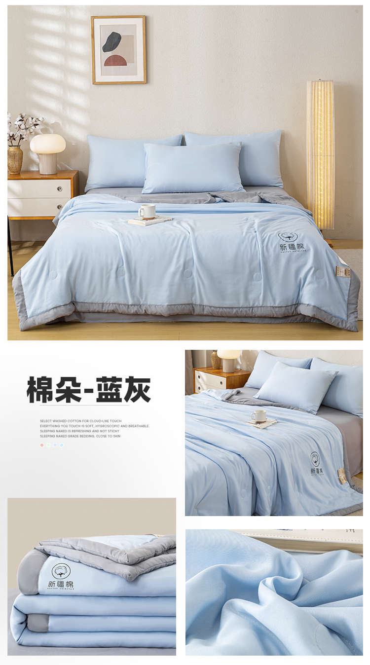 商品名称:2026新款撞色双拼新疆棉花被夏被无印风水洗棉空调被夏凉被子 棉朵-蓝灰
