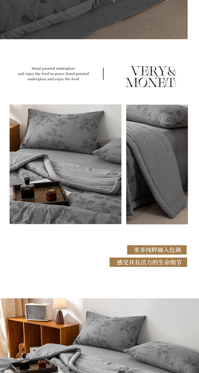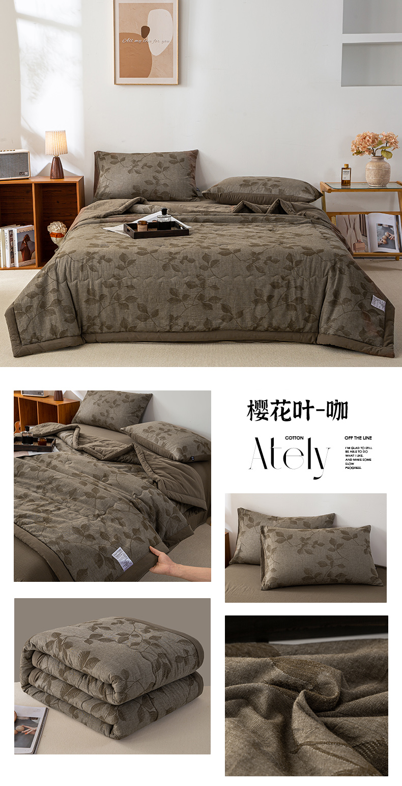 • 91家纺网 家纺一手货源 找家纺 恋人优选 2026新款樱花叶全棉提花夏被空调被 樱花叶-灰
