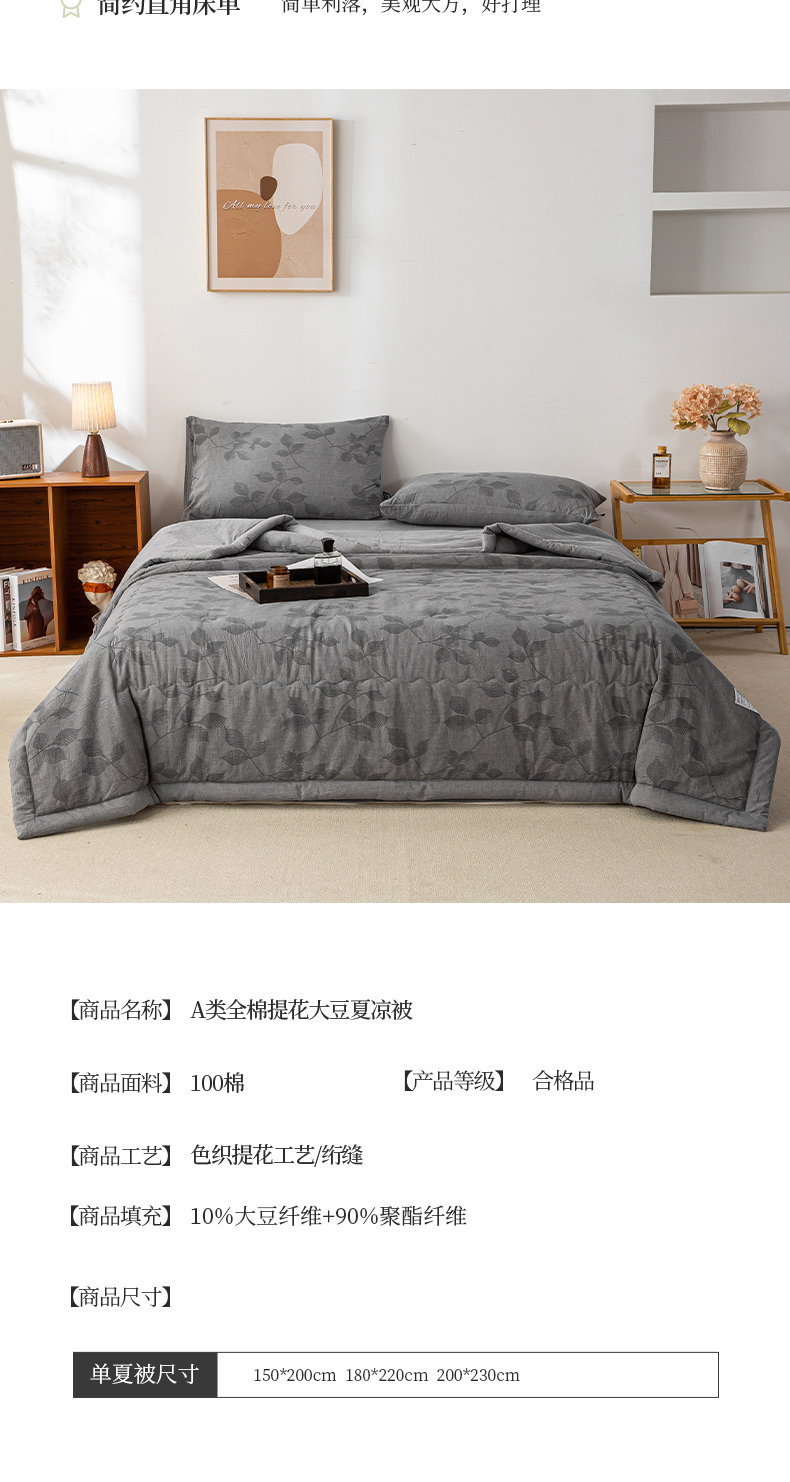 • 适用季节: 空调被/夏凉被