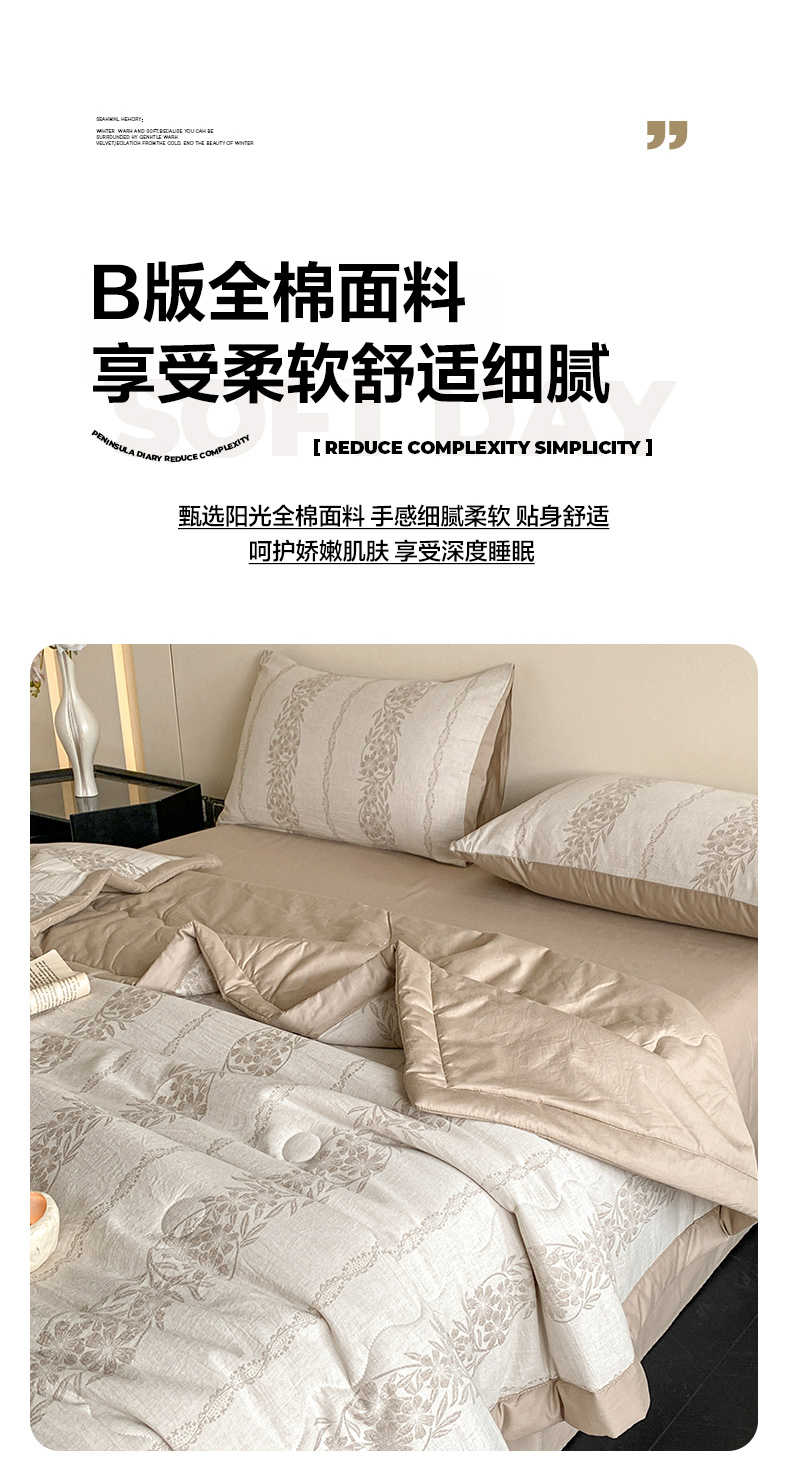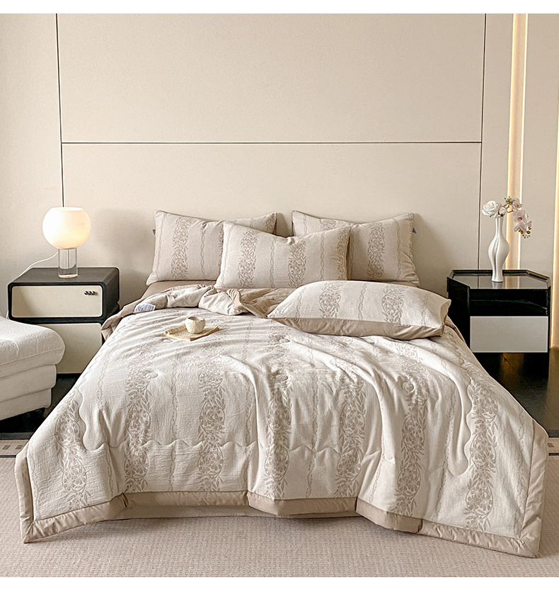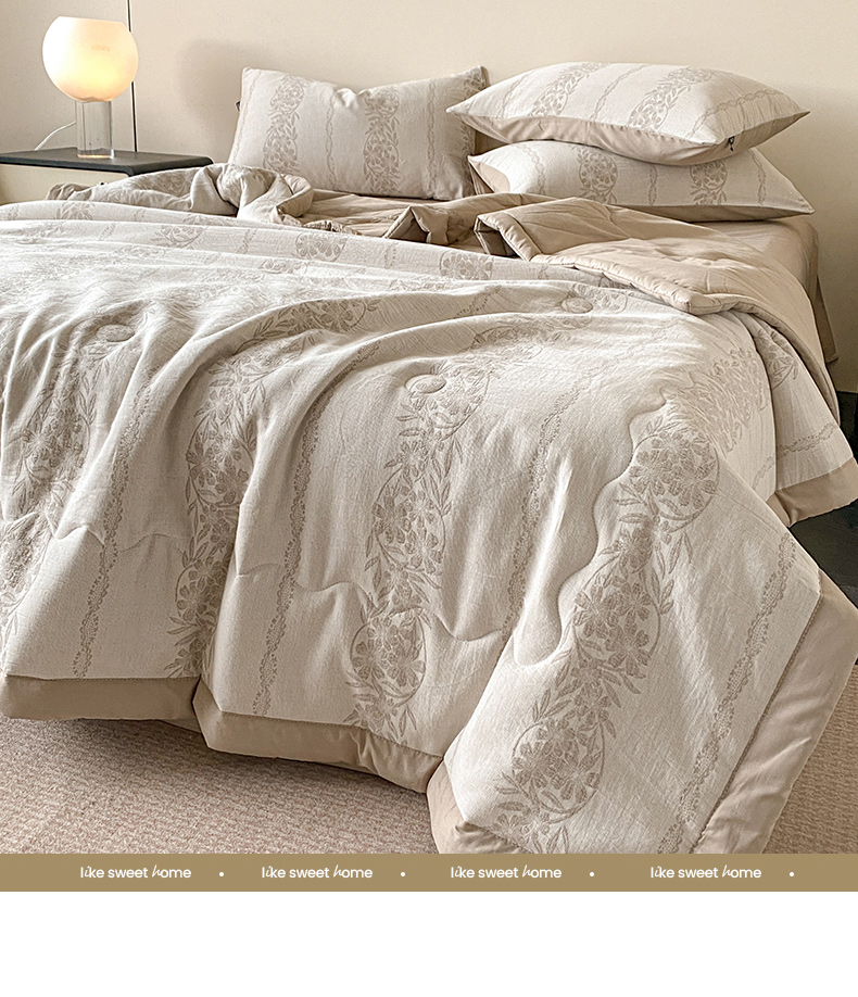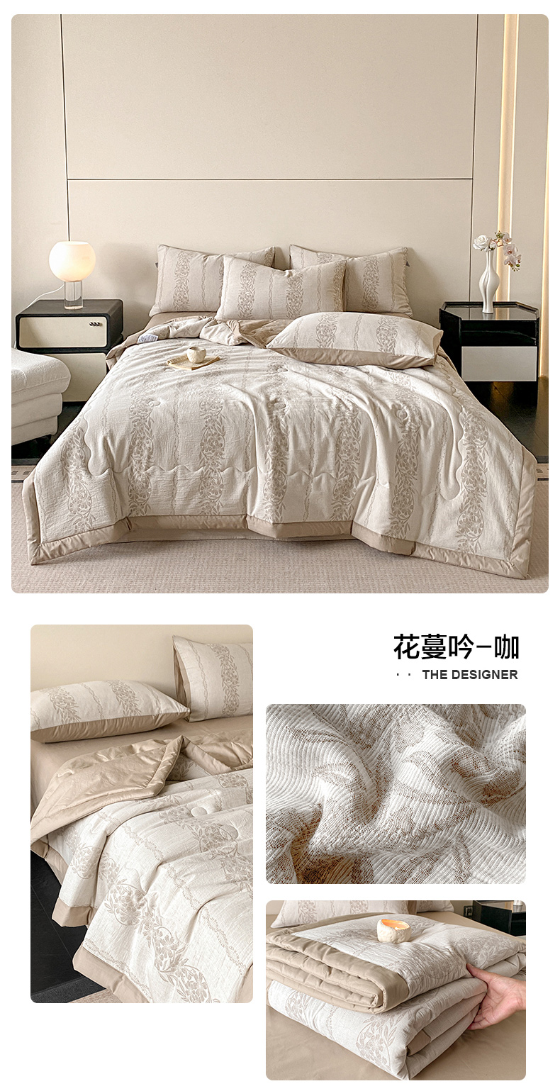 • 91家纺网 家纺一手货源 找家纺 恋人优选 2026新款全棉三层提花夏被空调被 花蔓吟-咖
