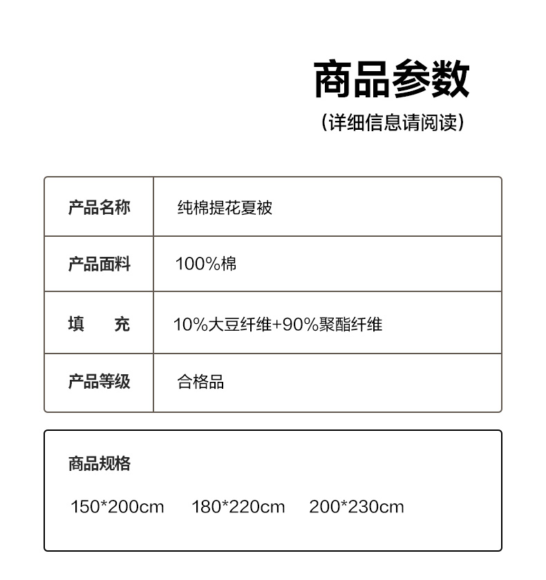 • 适用季节: 空调被/夏凉被