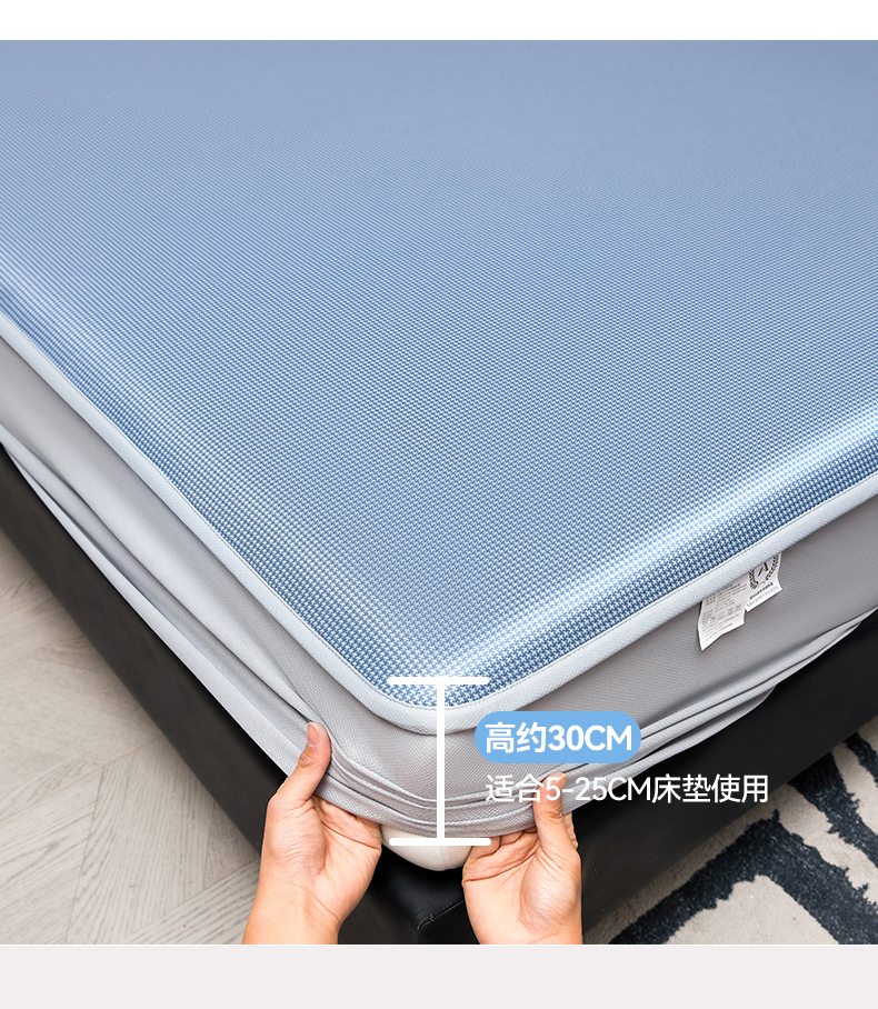 当前位置: 91家纺网 > 商品网购 > 床上用品 > 凉席 > 雯豆家纺 2026春夏新款碳光冰丝床笠加厚三明治凉感床垫保护套夏季床罩凉席席子 千鸟格-床笠款-海星蓝