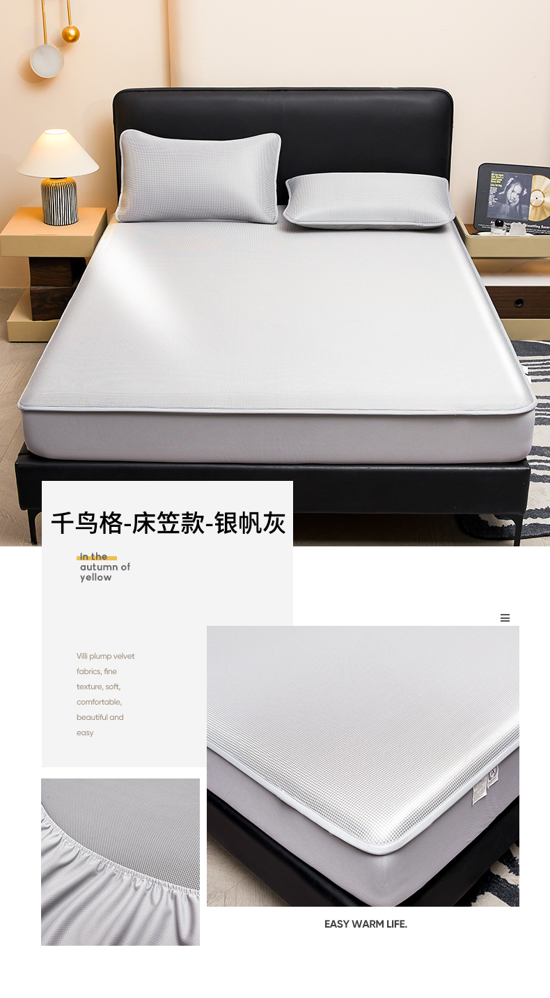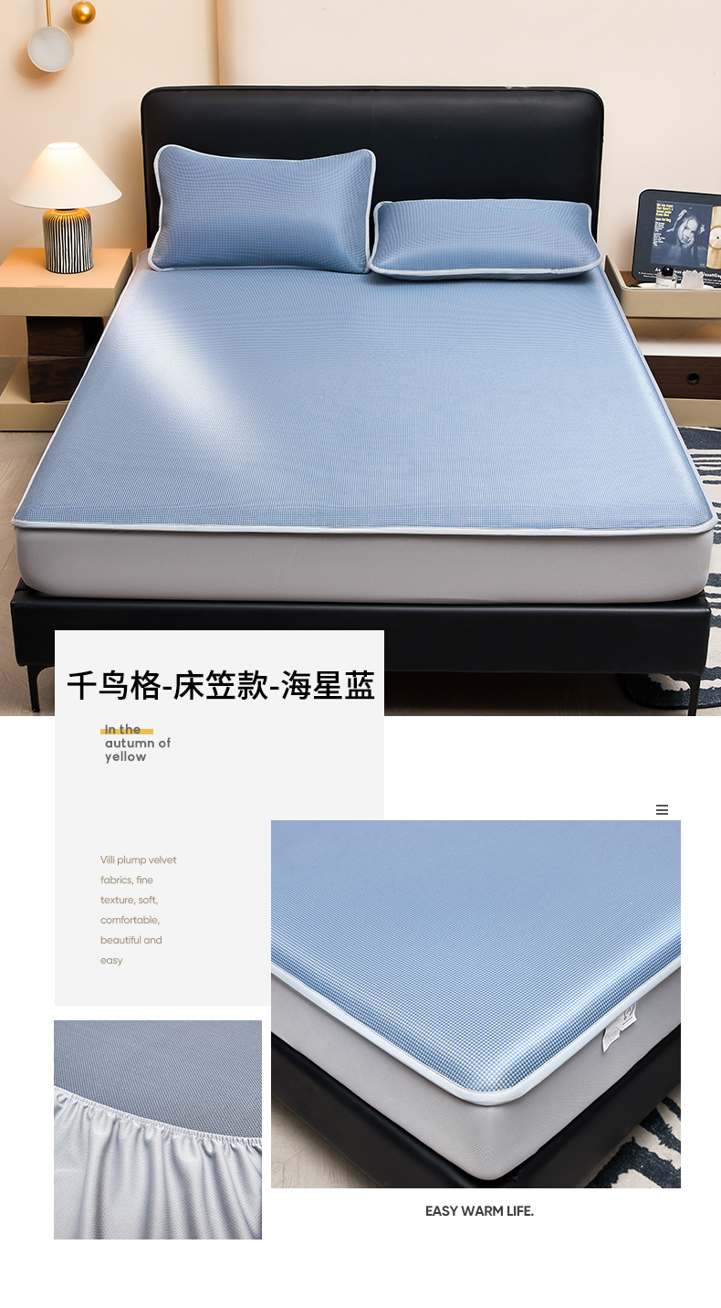 • 91家纺网 家纺一手货源 找家纺 (总)雯豆家纺 2026春夏新款碳光冰丝床笠加厚三明治凉感床垫保护套夏季床罩凉席席子,千鸟格-床笠款-海星蓝,千鸟格-床笠款千禧粉,千鸟格-床笠款松石绿,千鸟格-床笠款-香槟金,千鸟格-床笠款-银帆灰,组合图仅供展示不可下单