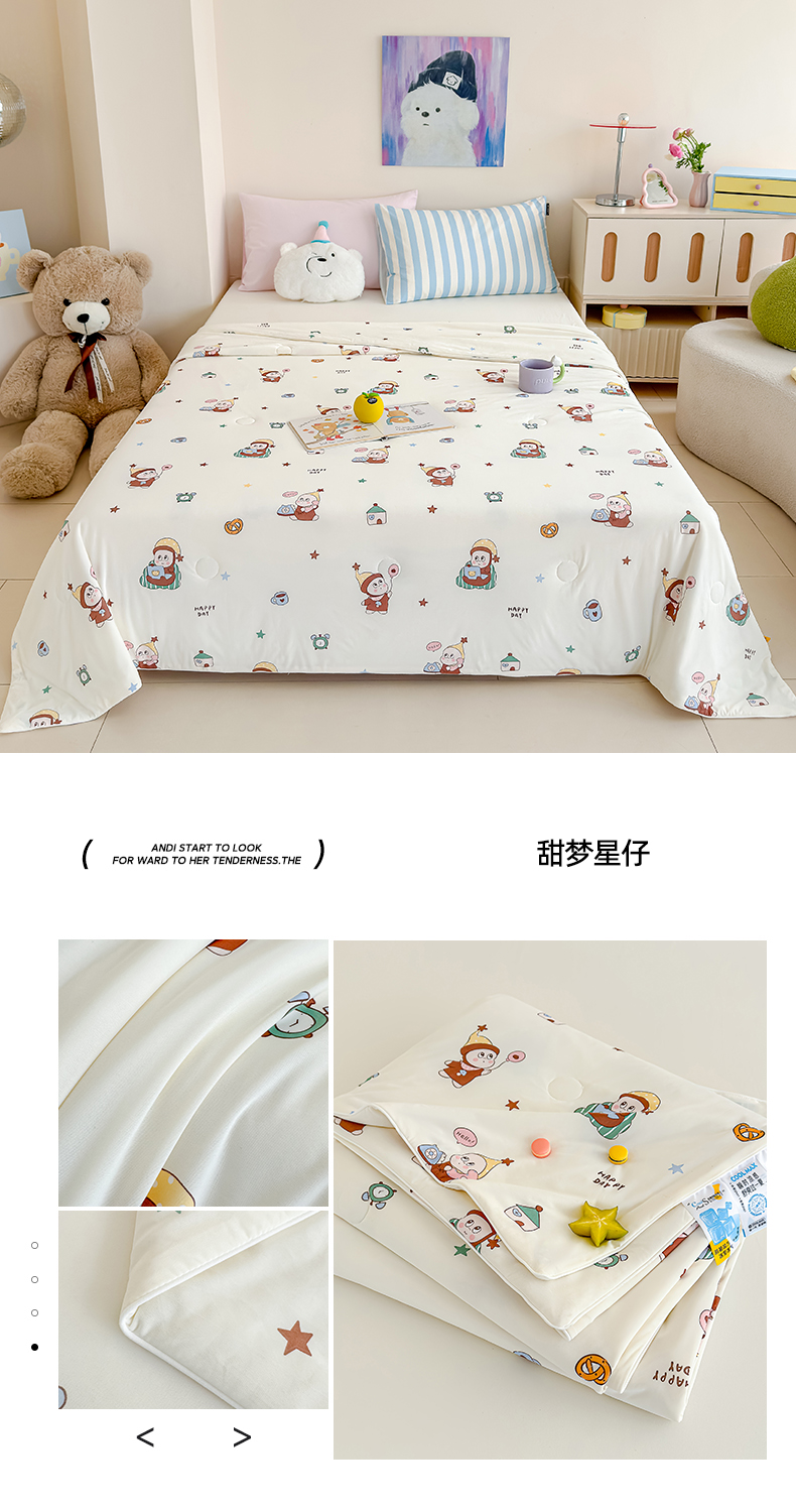商品名称:芯恋家居 2026年新款小冰川凉感夏被冰皮凉感印花夏被凉感丝夏被(四周踩棉工艺) 甜梦星仔