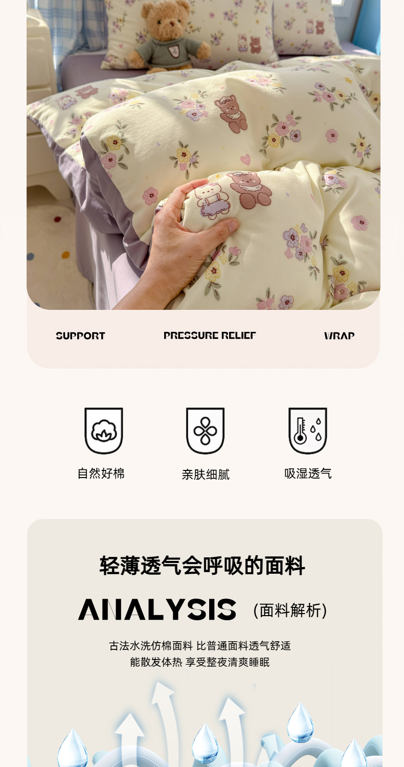 (总)铺尚美家纺 2026新款A类古法水洗仿棉云感纱四件套,萌兔小熊,安娜,波点熊,布丁狗,草莓啵啵,草莓熊-粉,草莓熊-蓝,丁香紫,格纹萌友团,格子熊,狗狗乐园,乖乖狗-灰,乖乖狗-玉,花园小猫,猫狗狂欢夜,玫瑰庄园,莫兰迪,奶绿牛油果,蔷薇花语,条纹小熊,小马星河,小奶团,星芒啵啵熊,雪花世界,英伦小木马,紫罗兰