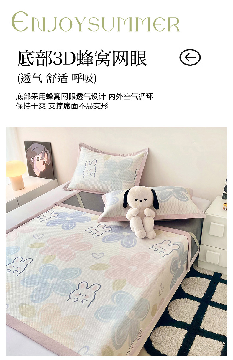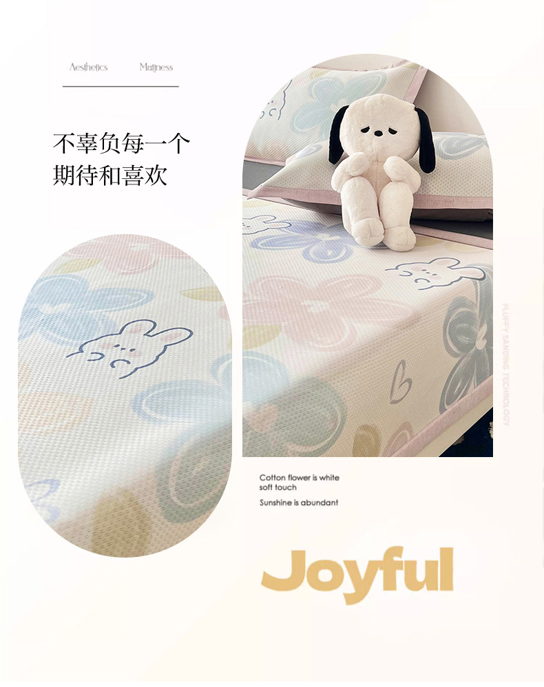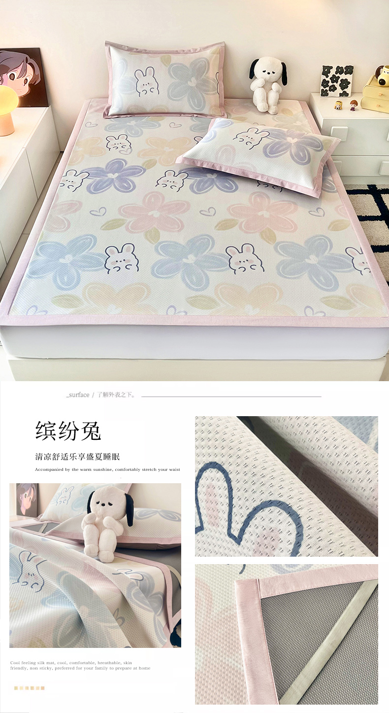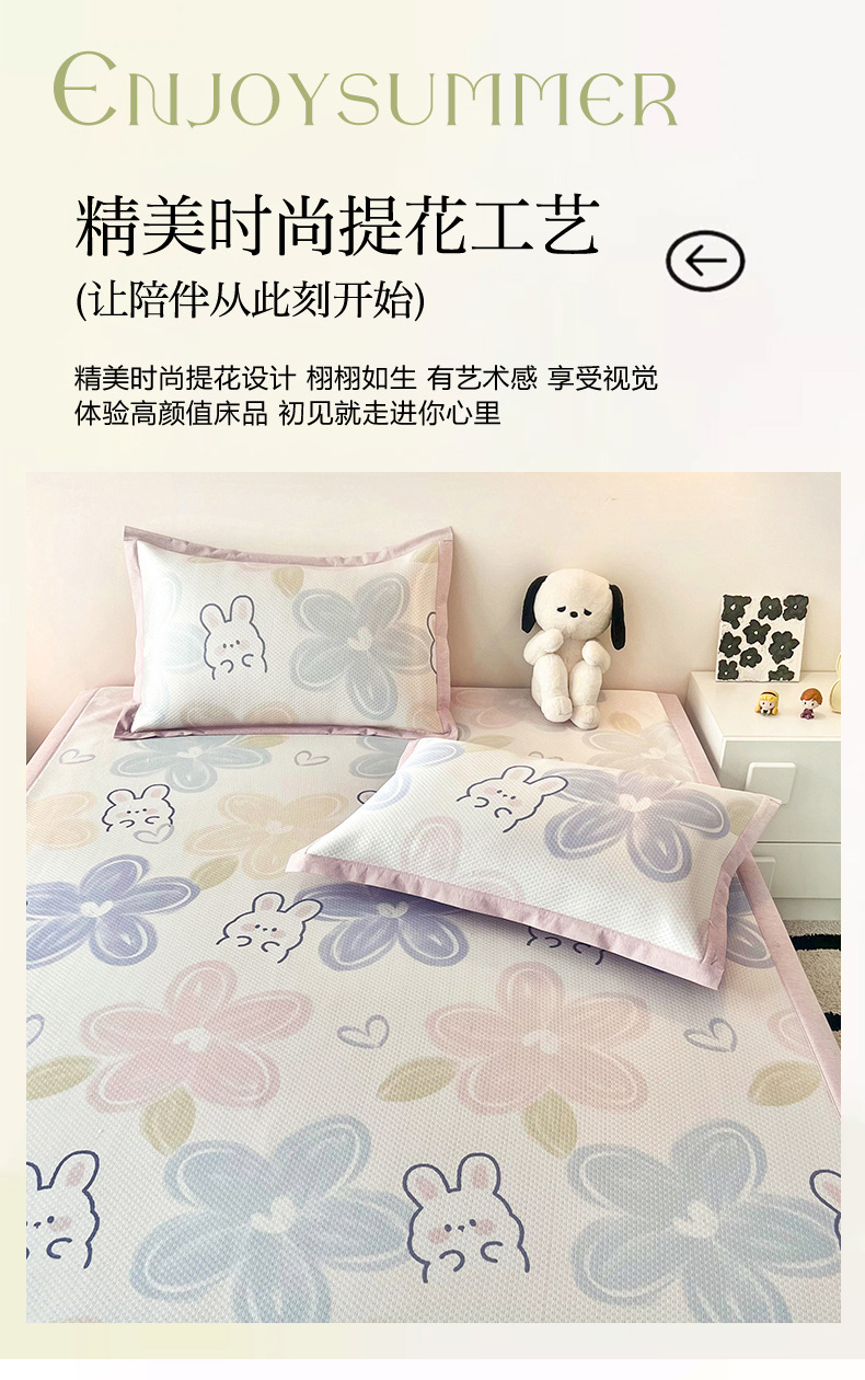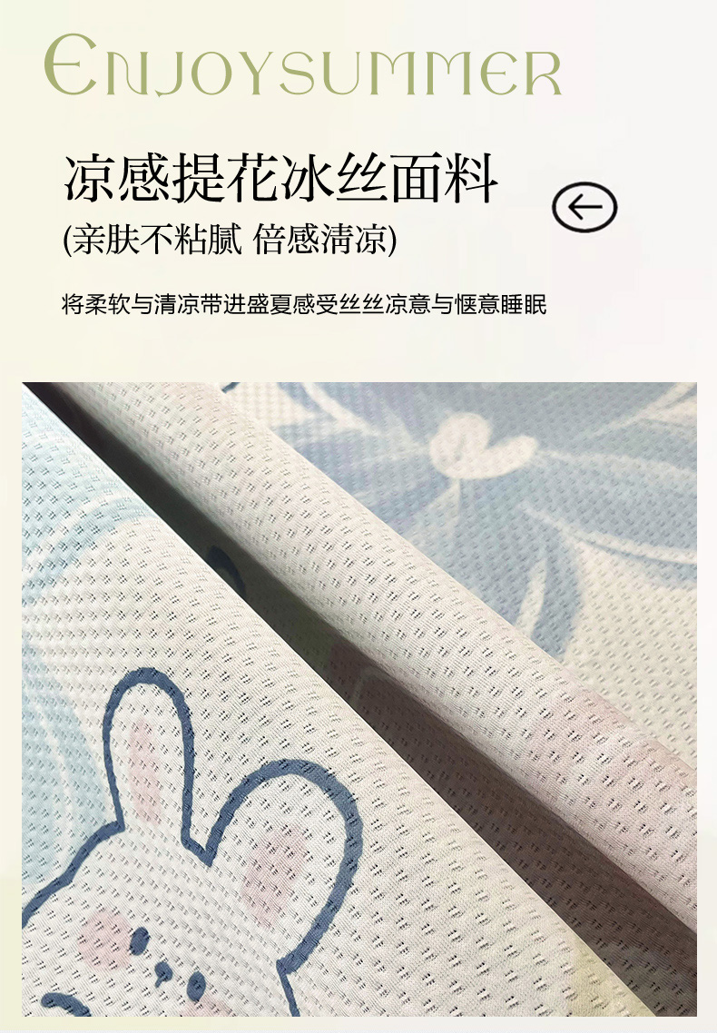 (总)倾慕家纺 2026新款A类满天星提花凉感凉席系列,缤纷兔,波波小龙,波浪彩龙,哈皮龙,开心兔,蓝色爱恋,乐动猫咪,律动小球,森林龙宝宝,条纹狗狗,小猫侠,小森林,叶小兔,PP熊猫