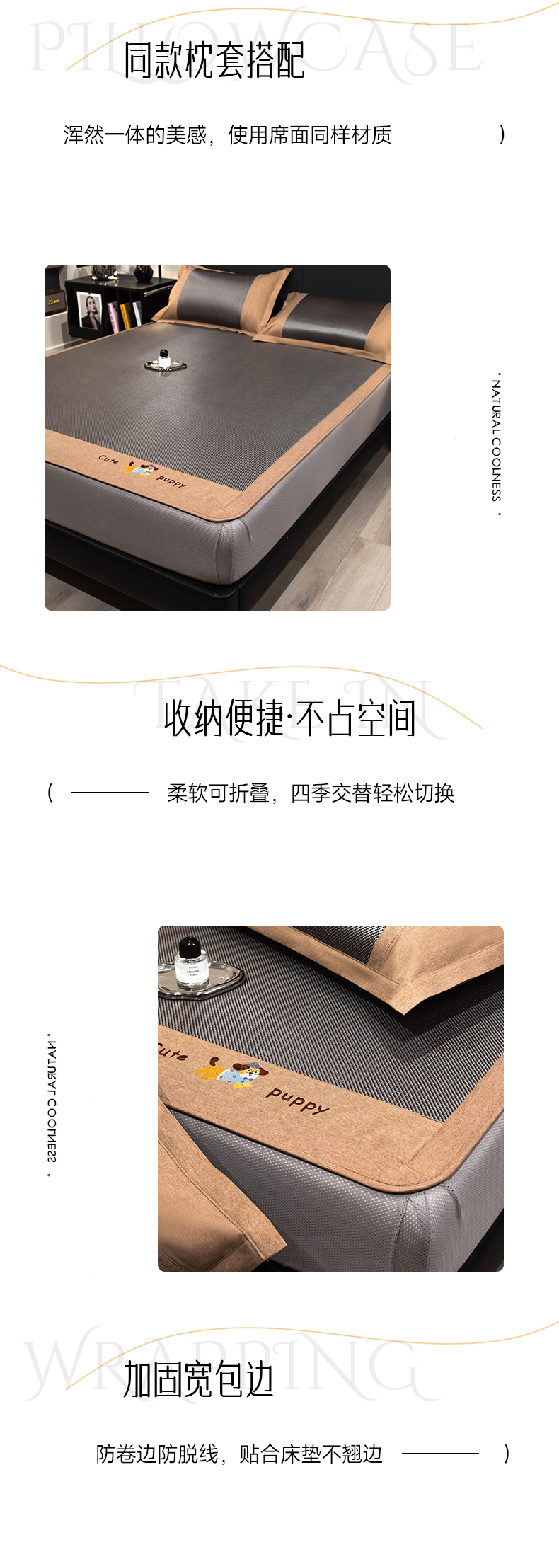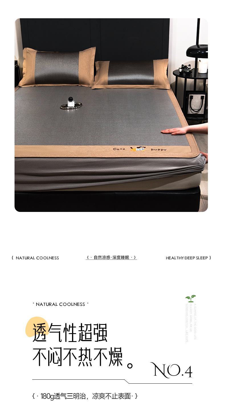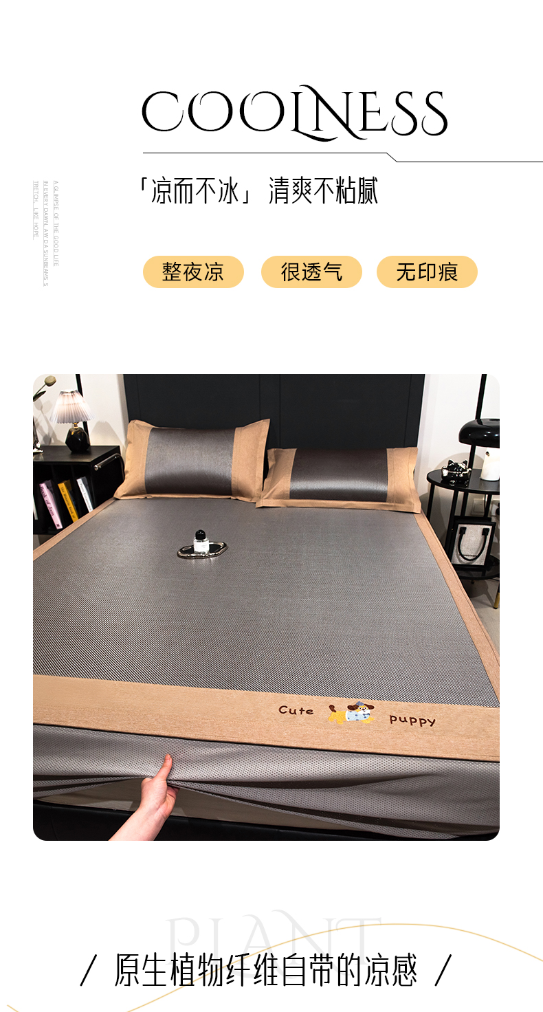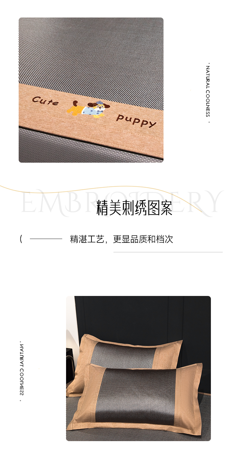 当前位置: 91家纺网 > 商品网购 > 床上用品 > 凉席 > 凉席套件 > 倾慕家纺 2026新款A类刺绣冰藤席--床笠款 刺绣小狗银咖色床笠款