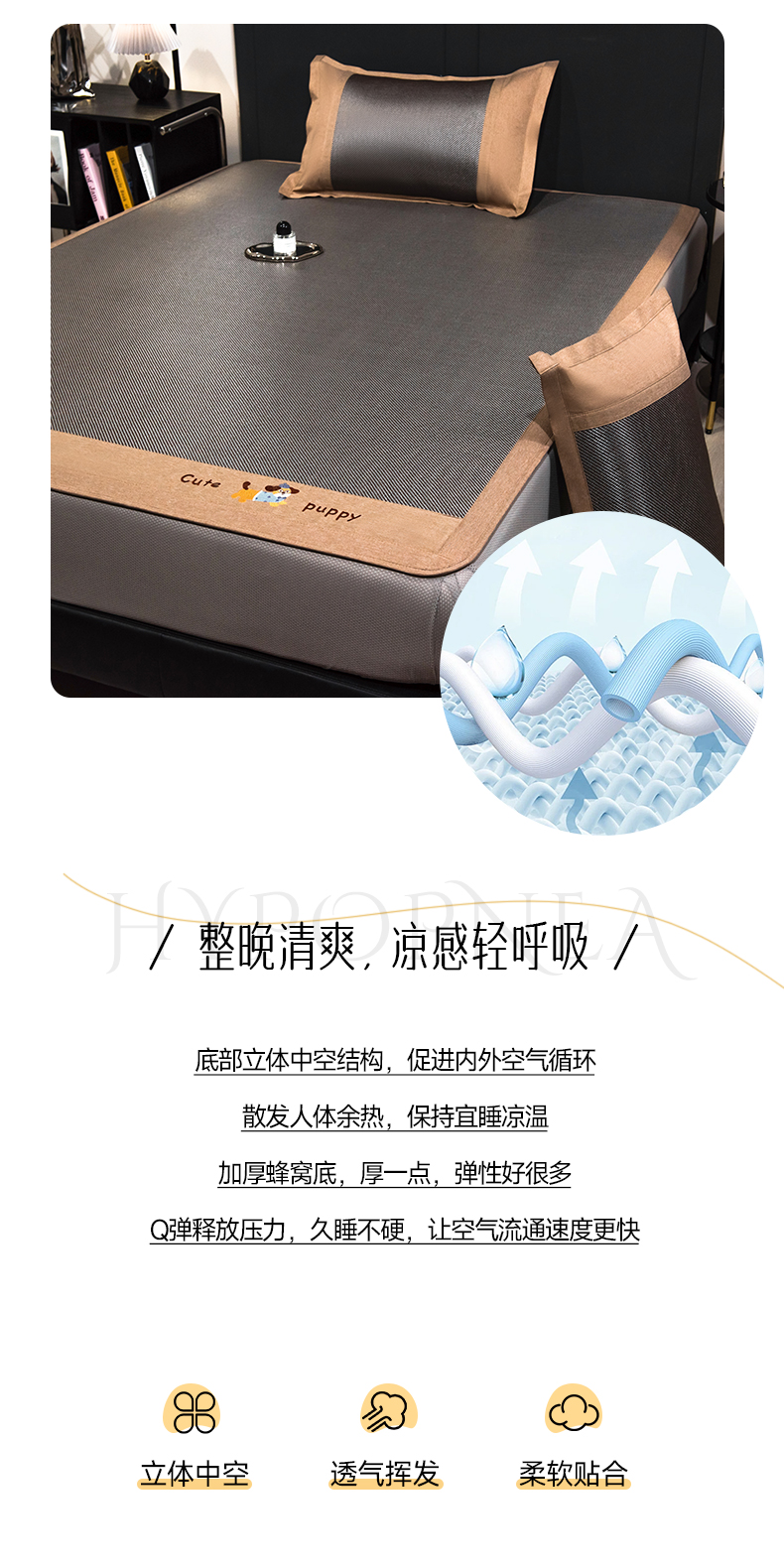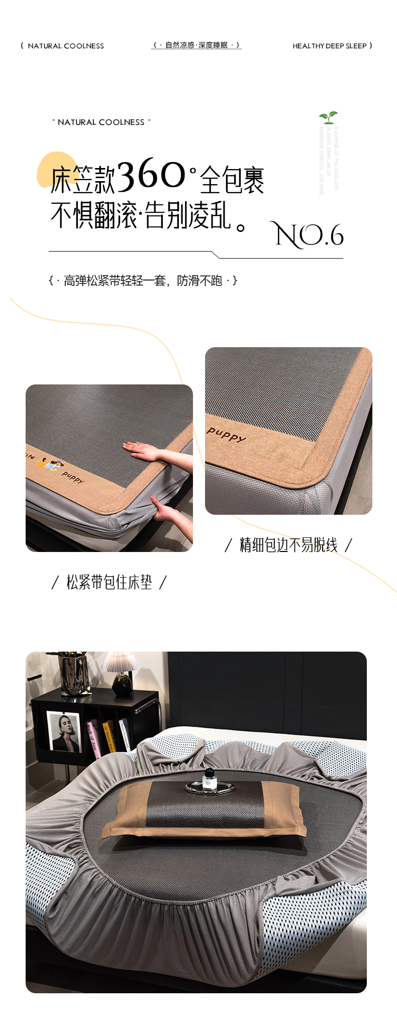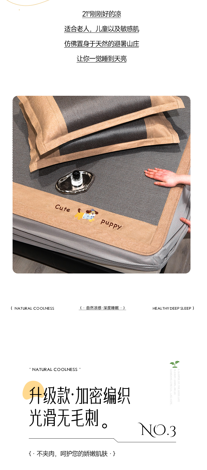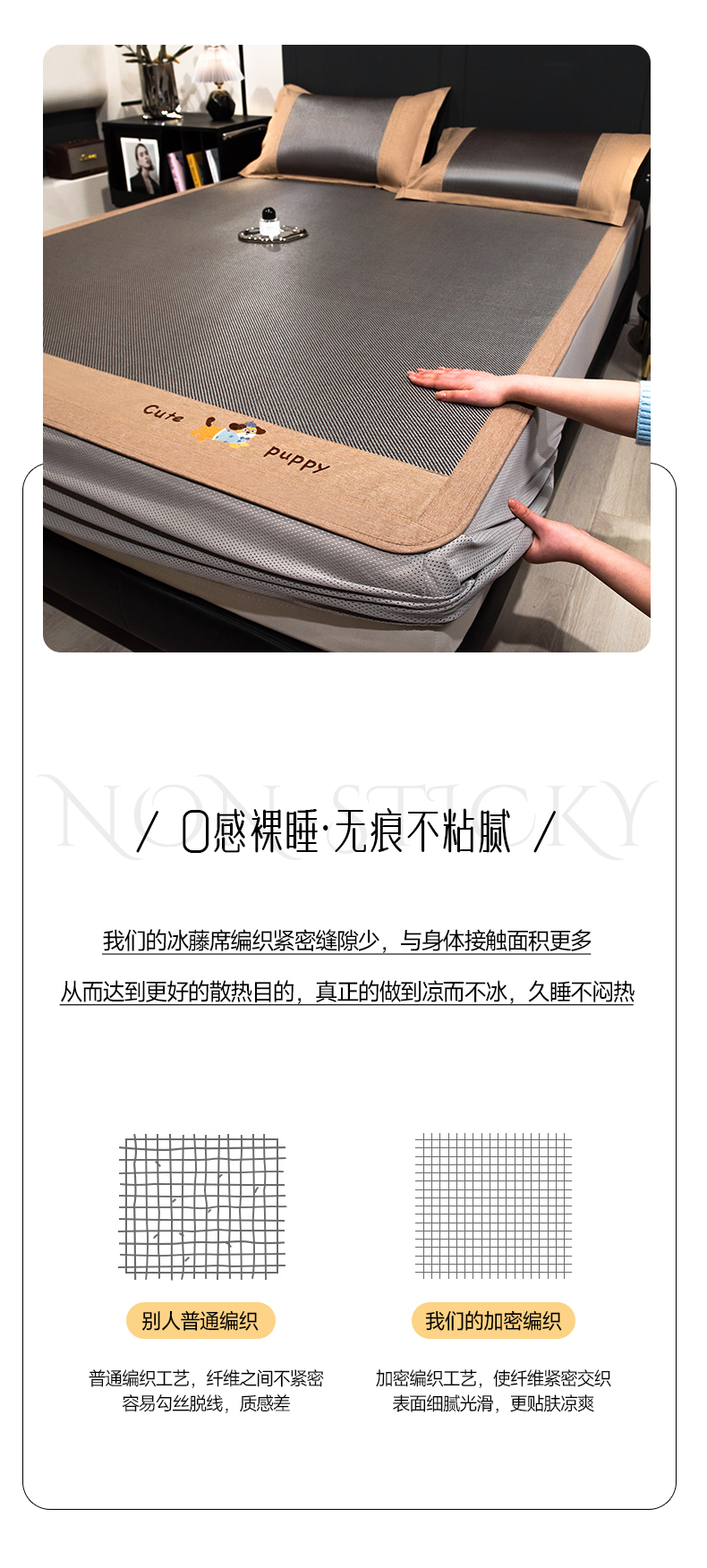当前位置: 91家纺网 > 商品网购 > 床上用品 > 凉席 > 凉席套件 > 倾慕家纺 2026新款A类刺绣冰藤席--床笠款 刺绣小狗银咖色床笠款
