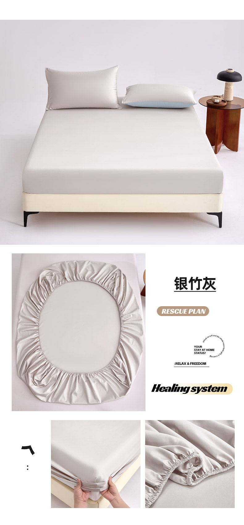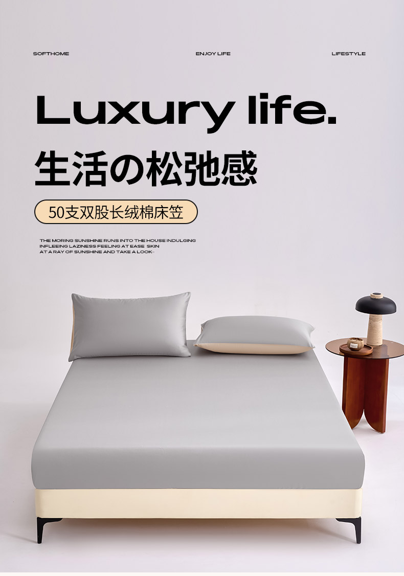 (总)合欢(原天一阁) 2026新款50s双股长绒棉全棉纯棉床笠三件套,水军蓝,香芋紫,银竹灰,流苏白,暖心粉,青柠绿,时空灰,香槟金,组合图(仅供展示不可下单)