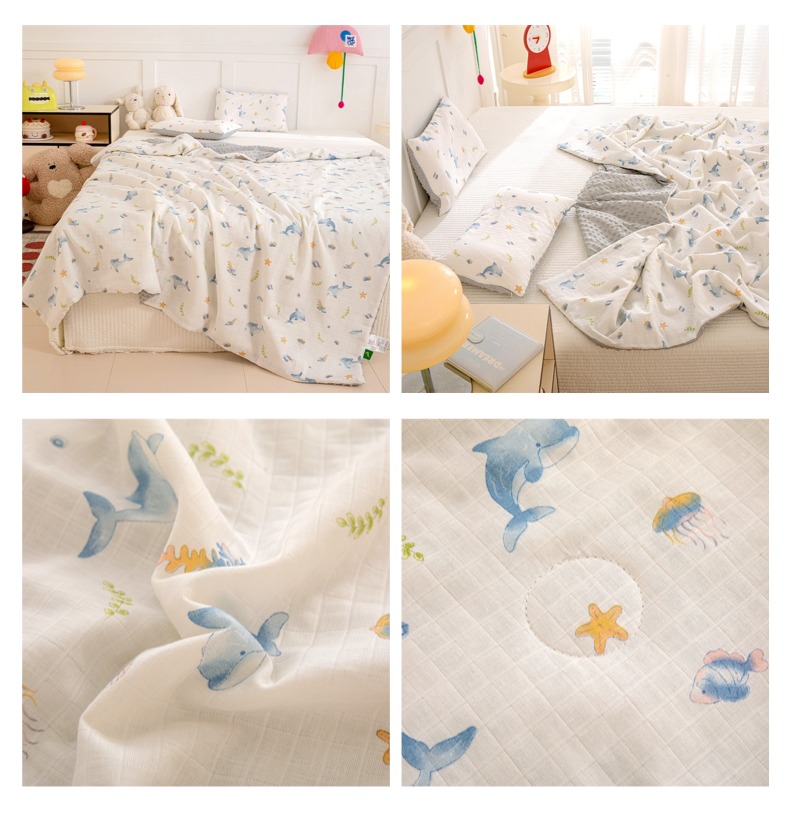 (总)十九色 2026新款婴儿纱皱布儿童贴身夏被被子被芯,彩虹兔,吃西瓜,呆萌熊,滑翔机,快乐星球,甜心草莓,五彩恐龙,小鲸鱼