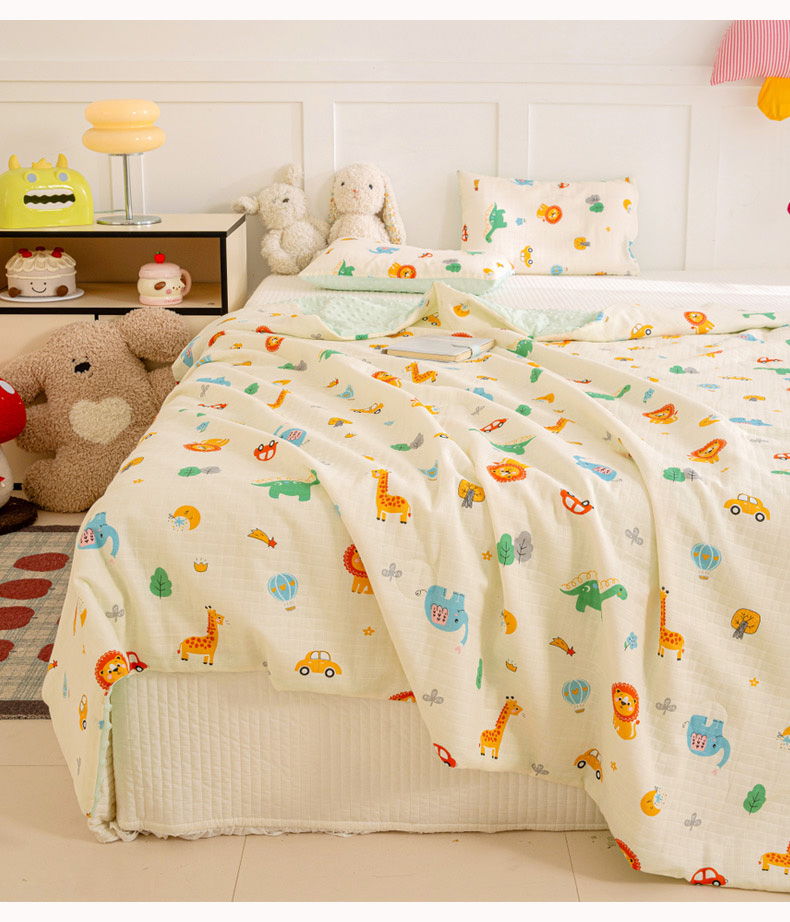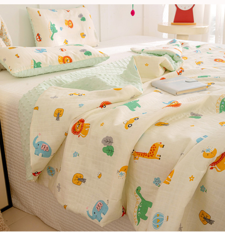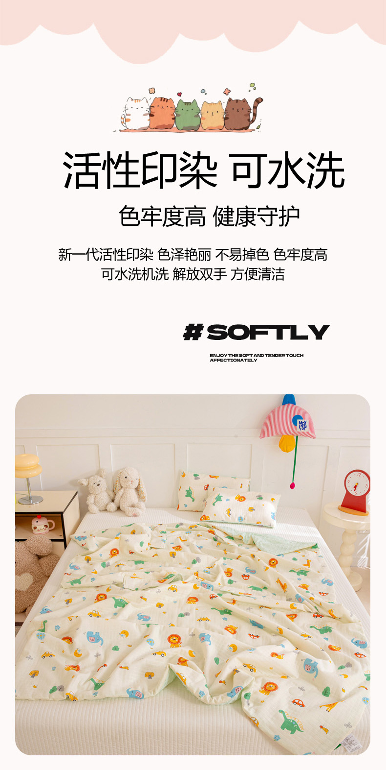 • 91家纺网 家纺一手货源 找家纺 (总)十九色 2026新款婴儿纱皱布儿童贴身夏被被子被芯,彩虹兔,吃西瓜,呆萌熊,滑翔机,快乐星球,甜心草莓,五彩恐龙,小鲸鱼