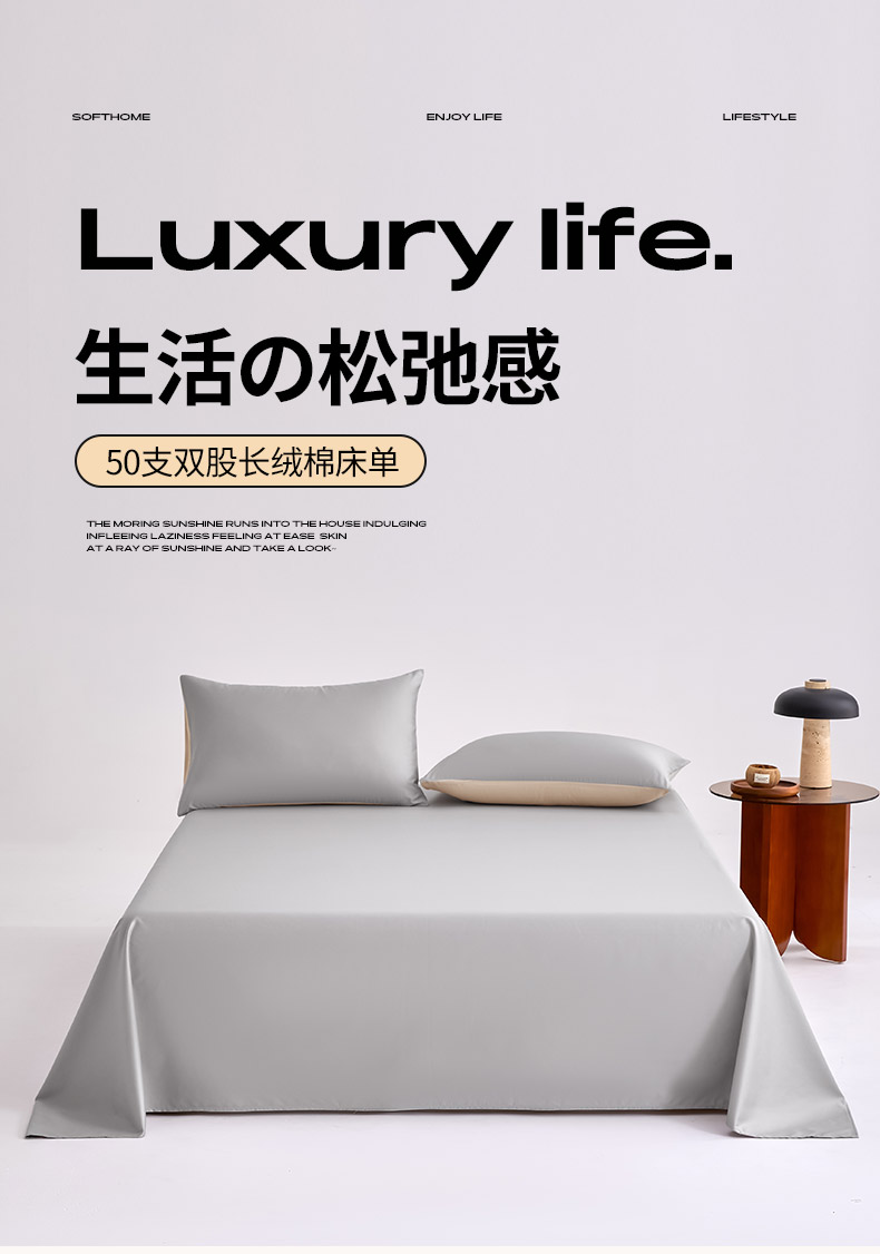 合欢(原天一阁) 2026新款50s双股长绒棉全棉纯棉床单三件套 时空灰