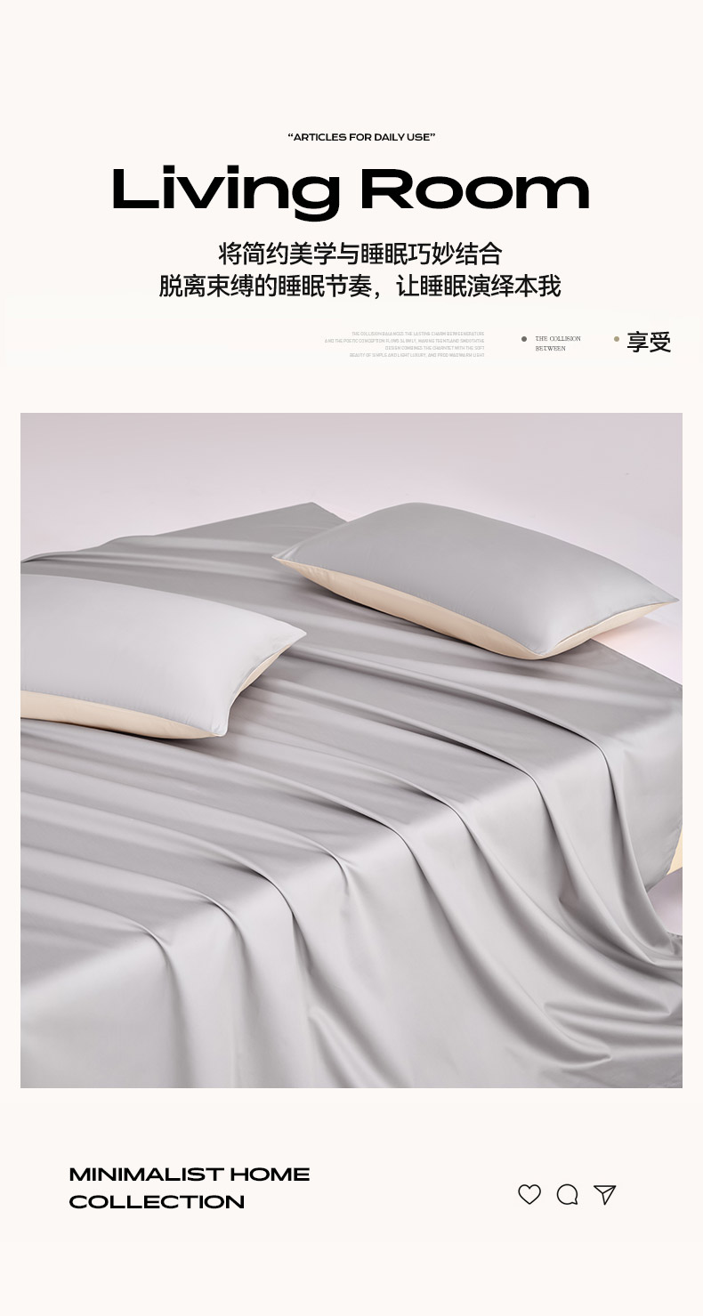商品名称:合欢(原天一阁) 2026新款50s双股长绒棉全棉纯棉床单三件套 时空灰