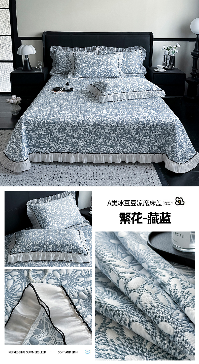 当前位置: 91家纺网 > 商品网购 > 床上用品 > 凉席 > 凉席套件 > 卡罗兰 2026新款床盖凉席凉感豆豆凉席花边床盖冰豆豆凉席单件三件套-繁花系列 繁花-天蓝