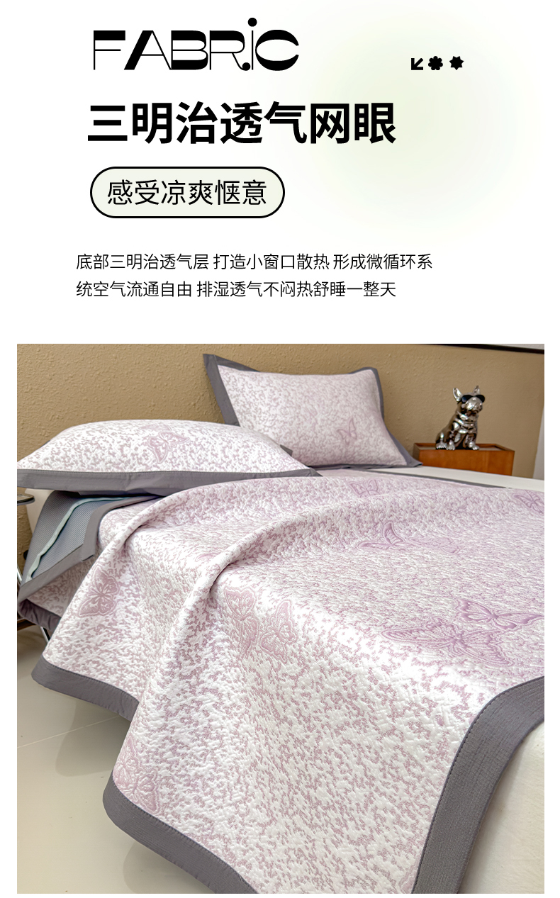 当前位置: 91家纺网 > 商品网购 > 床上用品 > 凉席 > 其他凉席 > 莱家富 2026新款公主风凉感值过0.21空调席子软席冰豆豆凉席三件套-蝴蝶蝶舞花语系列 床席款蝶舞花语-森林绿