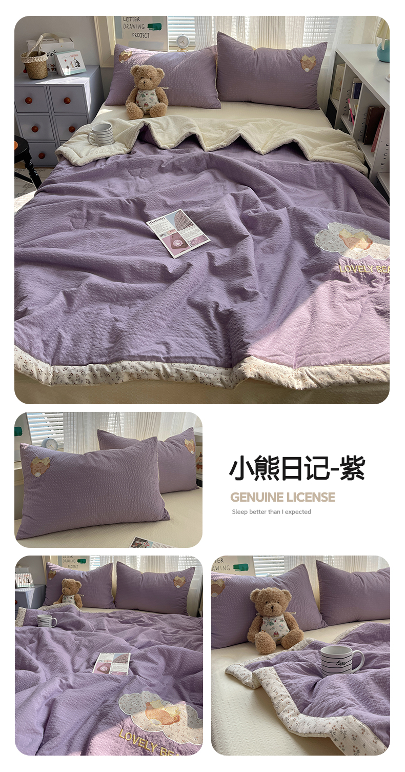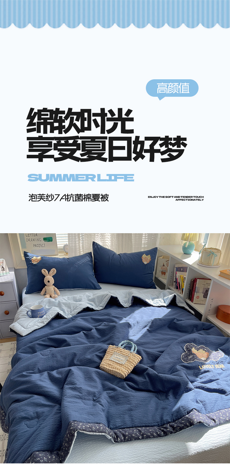 (总)贝扬思家纺 2026新款泡芙纱夏被夏凉被空调被贴布绣套件@小熊日记系列(可爱到犯规的夏被噜),小熊日记-藏青,小熊日记-黄粉,小熊日记-咖,小熊日记-蓝粉,小熊日记-绿,小熊日记-紫