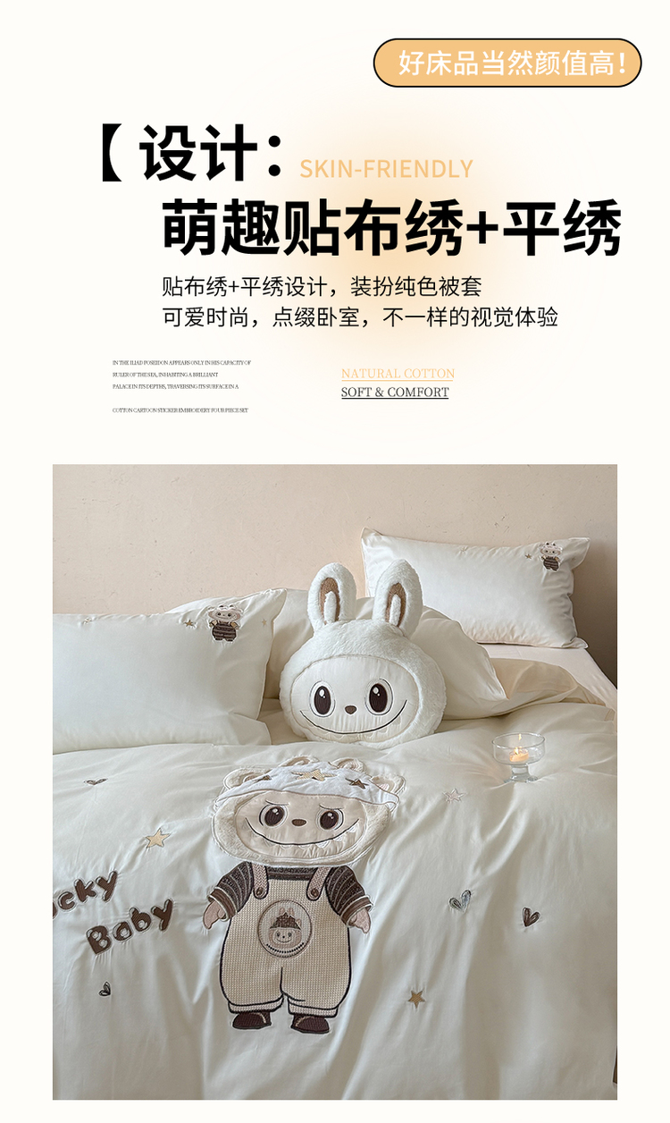 (总)优悦生活馆 2026新款全棉贴布绣四件套-喵喵小香风,喵喵小香风-米色,喵喵小香风-白,喵喵小香风-粉
