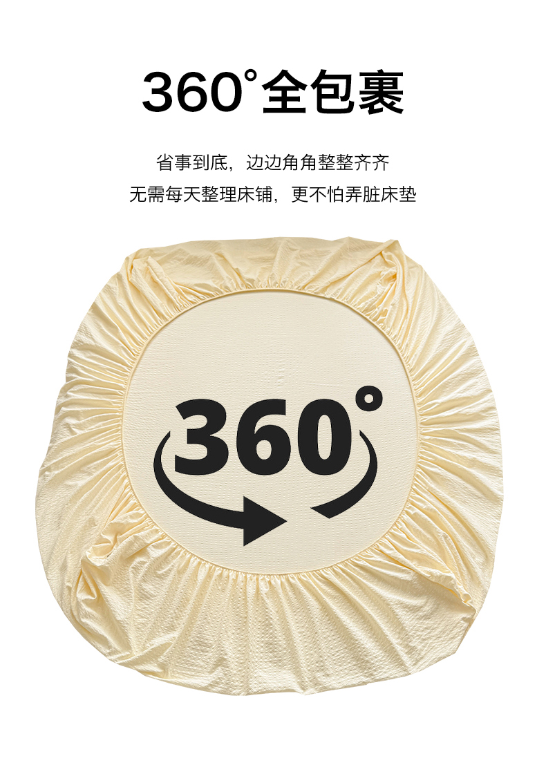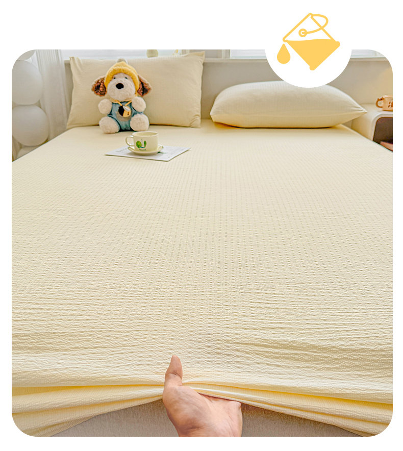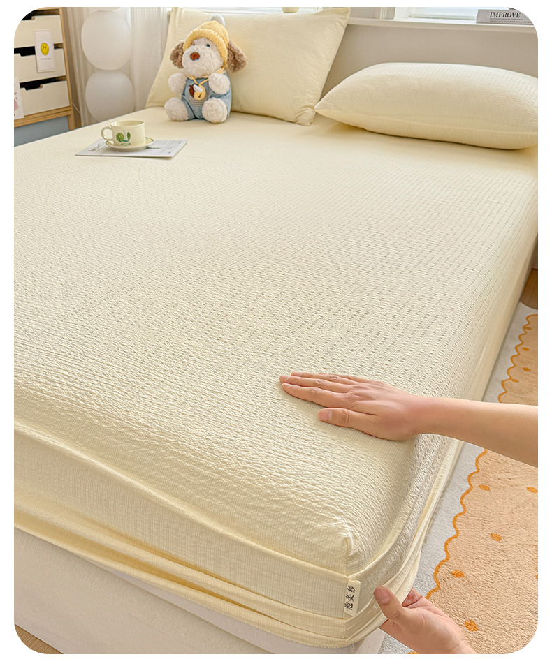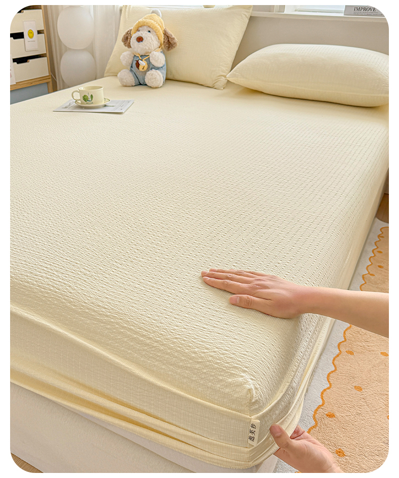 • 91家纺网 家纺一手货源 找家纺 女子家纺 2026新款亲肤泡芙纱印花床笠单床笠床笠单件 杏仁白
