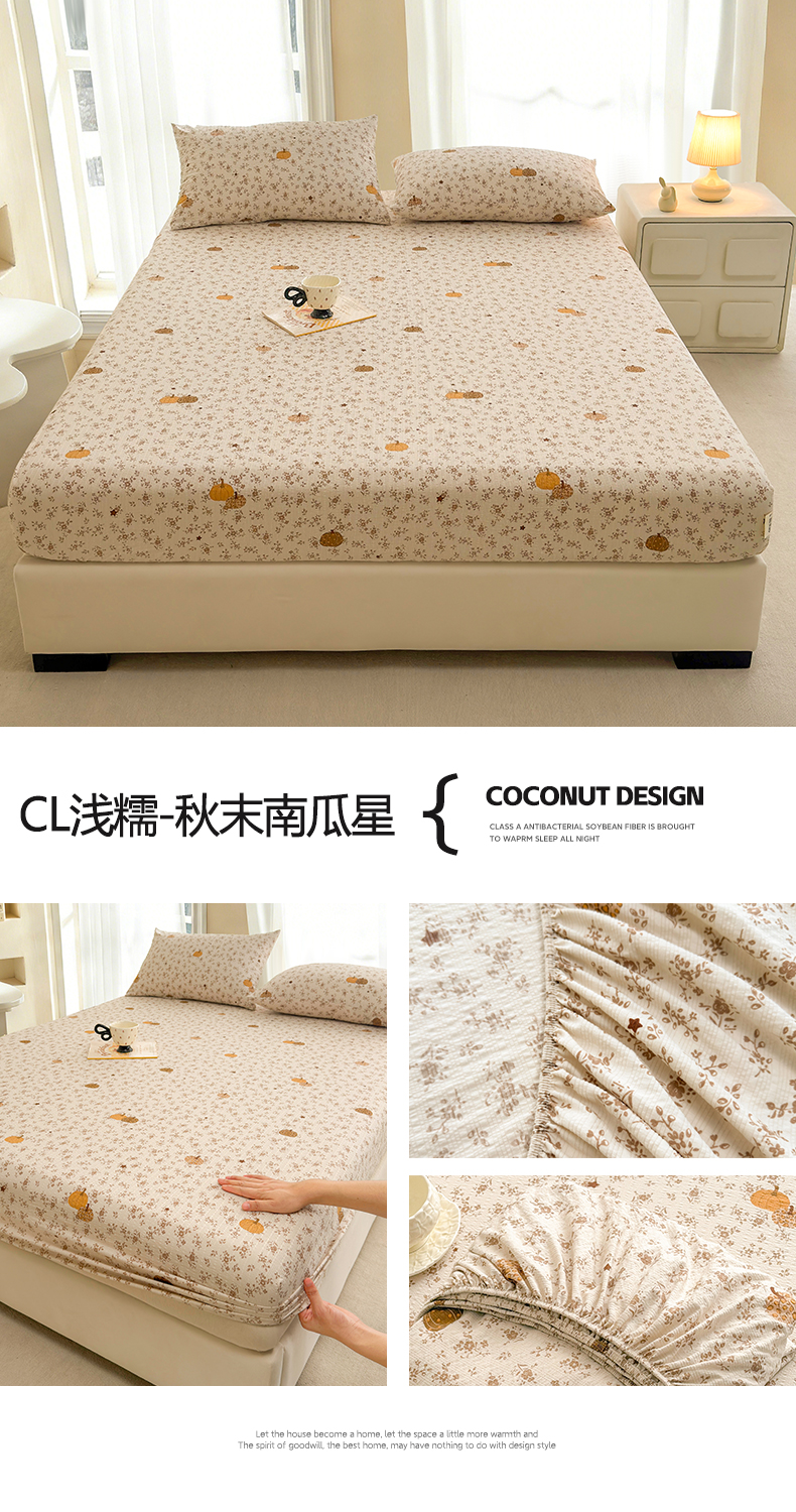 • 91家纺网 家纺一手货源 找家纺 几禾 2026新款高克重泡芙纱~印花款(单床笠)浅糯系列-110g CL浅糯-暖橘枝