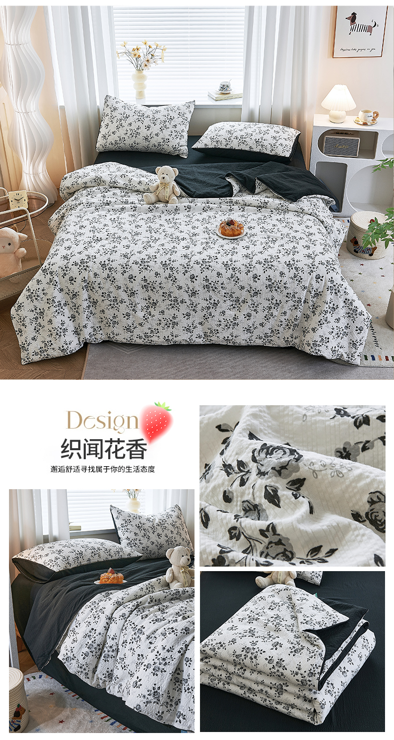 • 91家纺网 家纺一手货源 找家纺 铺尚美家纺 2026新款泡芙棉夏被四件套泡芙纱单夏被空调被夏凉被-印花 浅川蓝