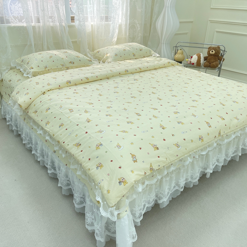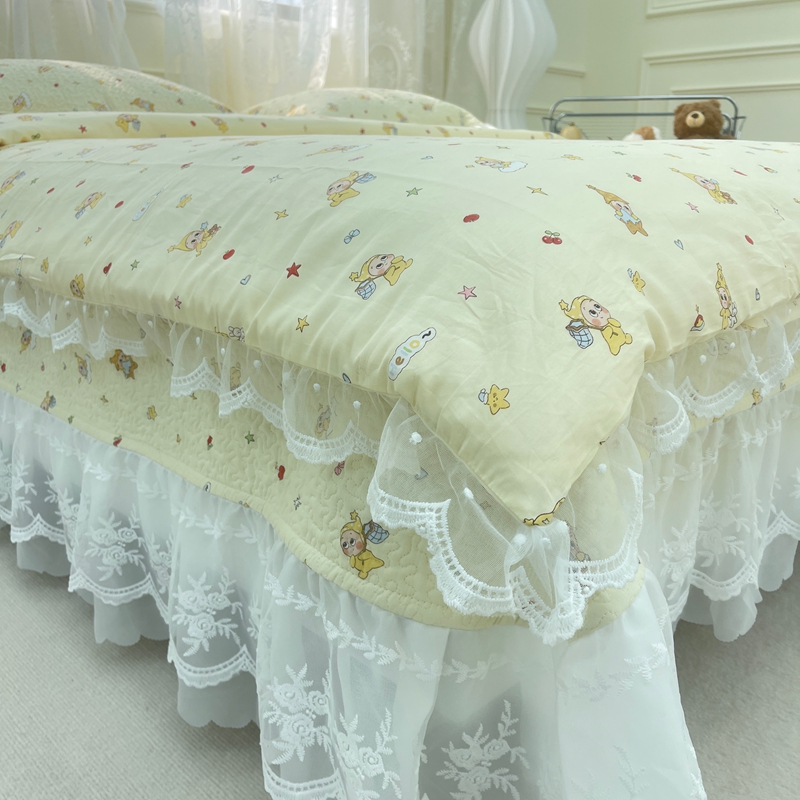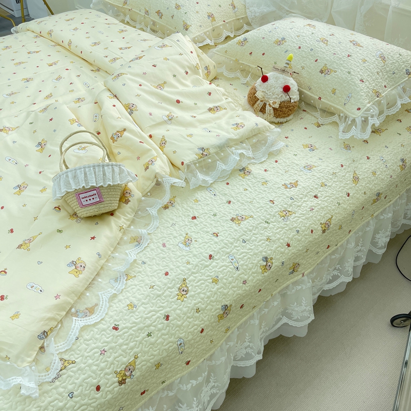 禧瑞谷 2025新款双层花边纯棉床盖雪纺蕾丝款纯棉床盖四件套 星星人