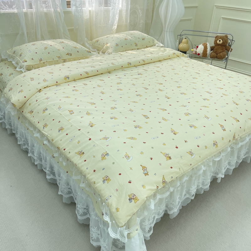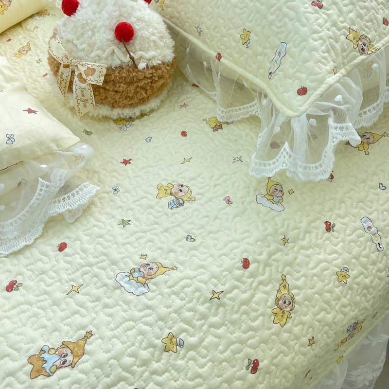 商品名称:禧瑞谷 2025新款双层花边纯棉床盖雪纺蕾丝款纯棉床盖四件套 星星人