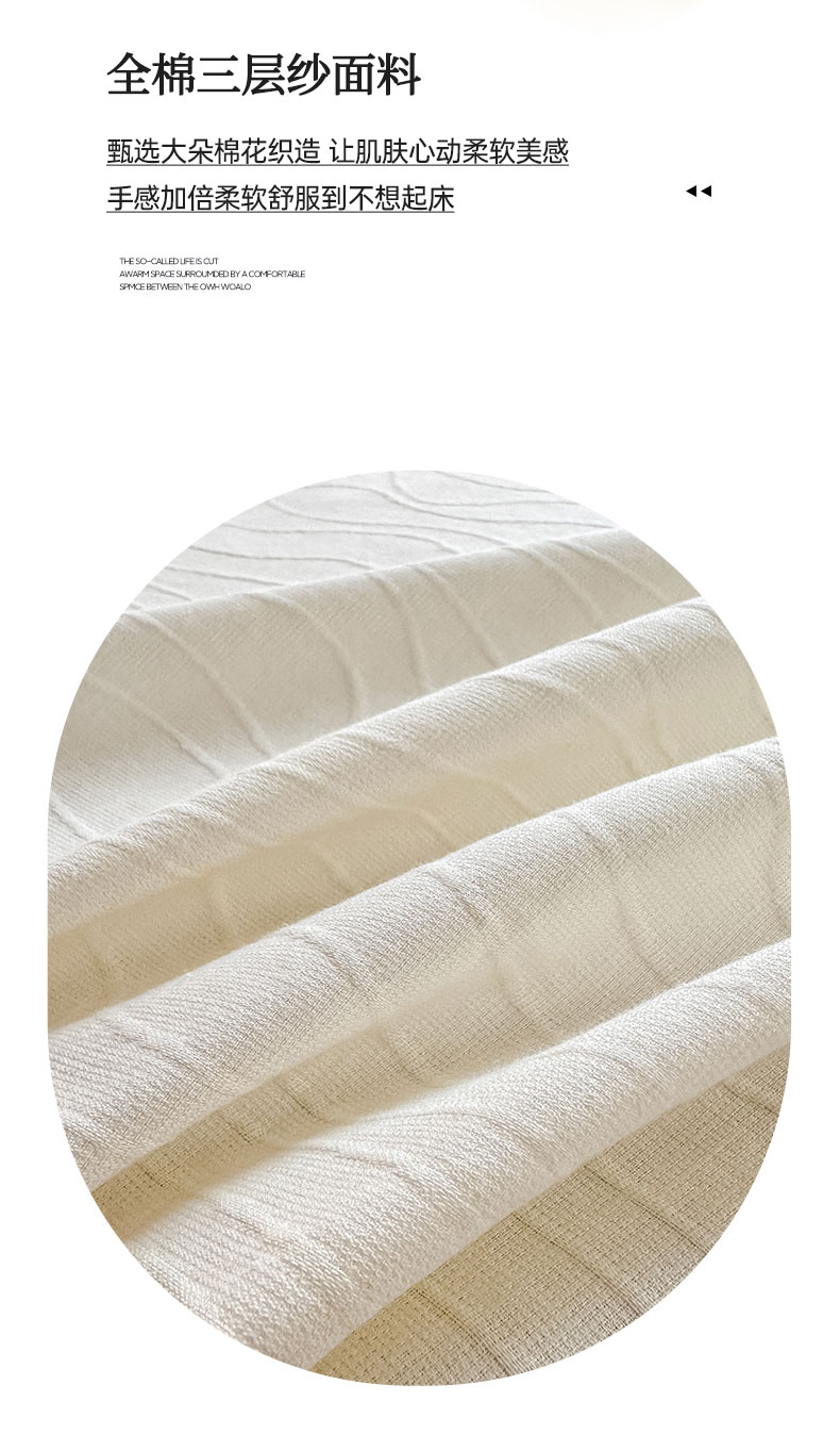 商品名称:(总)灰鲸 2026新款全棉简约三层纱色织提花单品床单