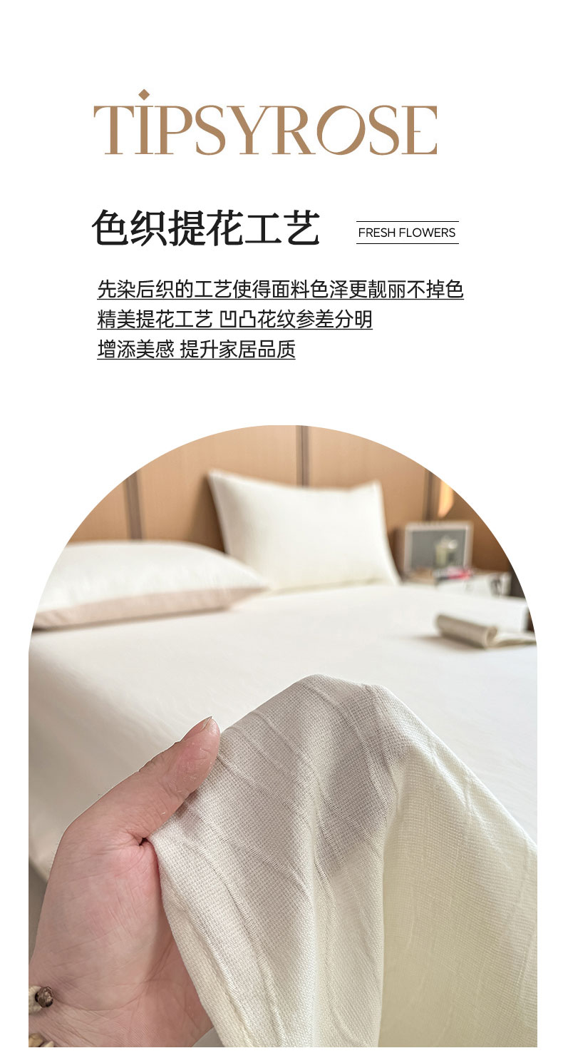 (总)灰鲸 2026新款全棉简约三层纱色织提花单品床单