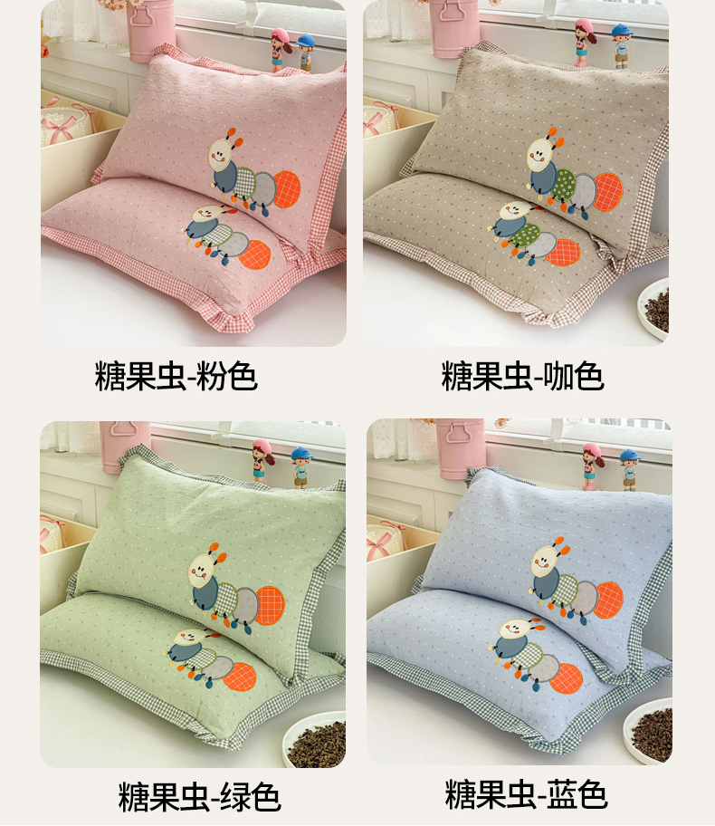 (总)梦叶草 2026新款全棉色织荞麦枕糖果虫荞麦枕枕头枕芯,糖果虫-咖色,糖果虫-粉色,糖果虫-蓝色,组合图仅供展示不可下单,糖果虫-绿色,糖果虫-米黄