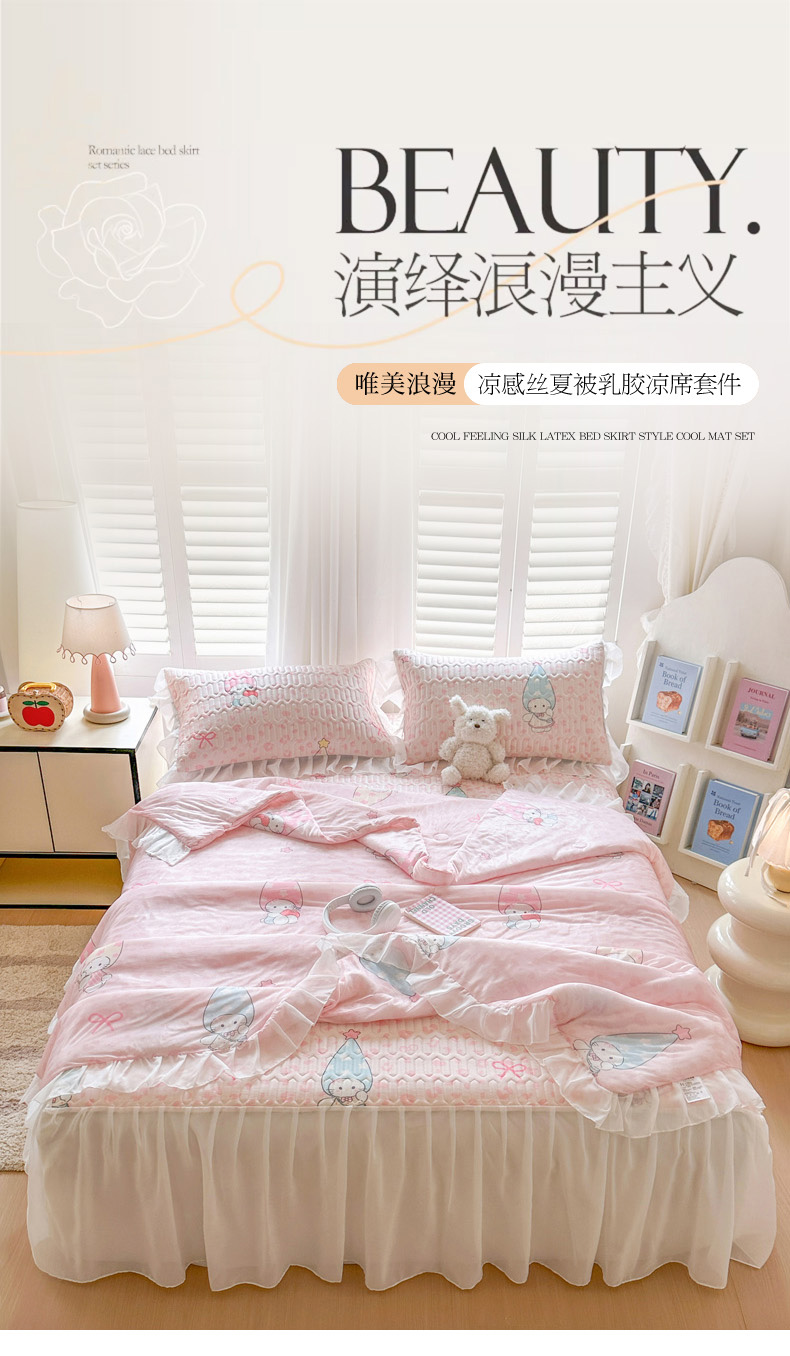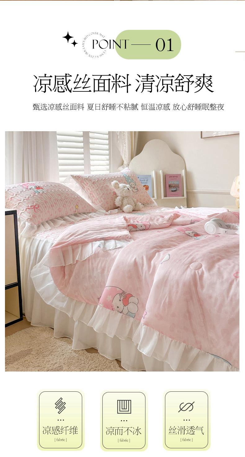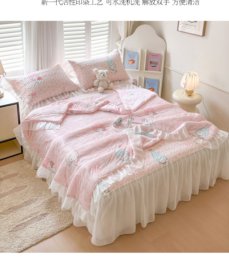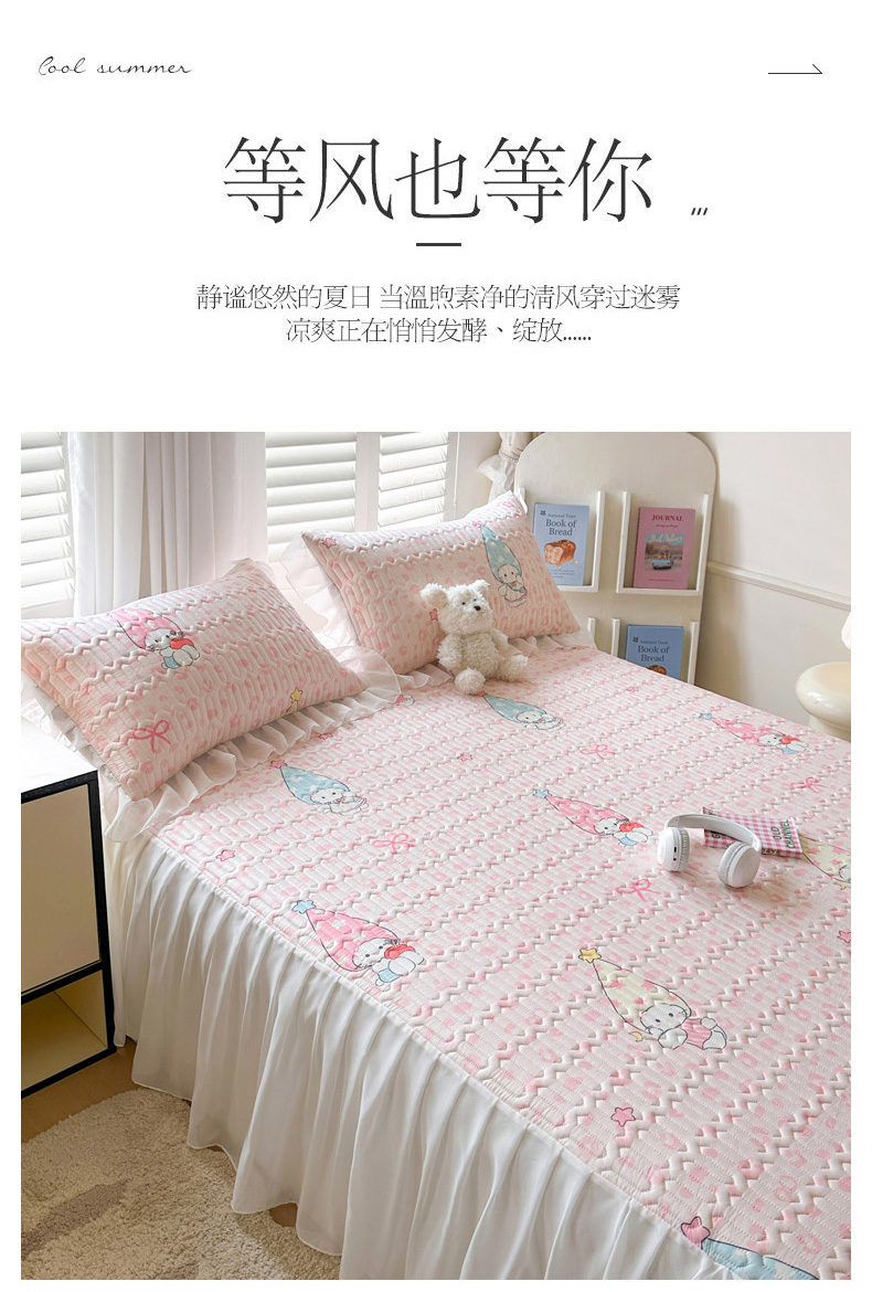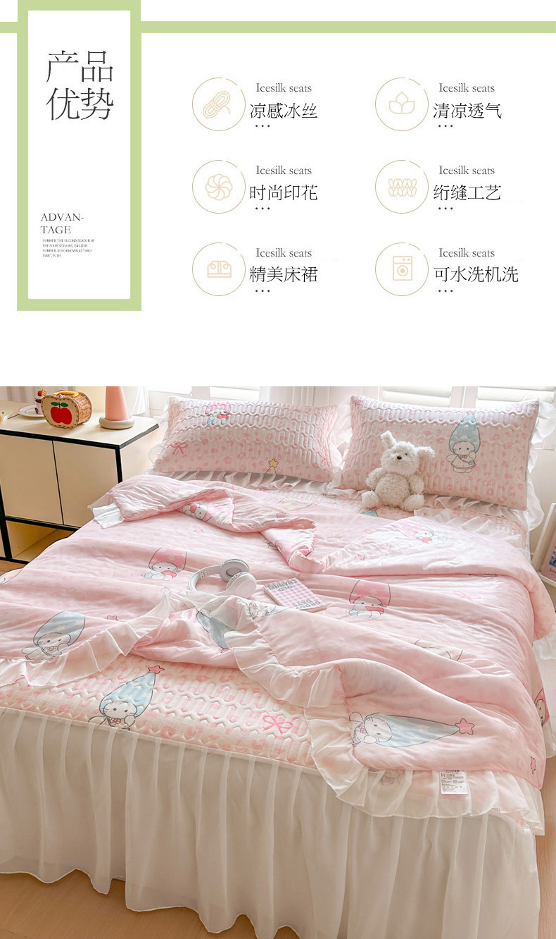 • 91家纺网 家纺一手货源 找家纺 慕澄2026新款小版印花床裙款乳胶凉席凉感丝夏被四件套 小精灵