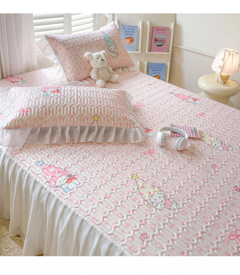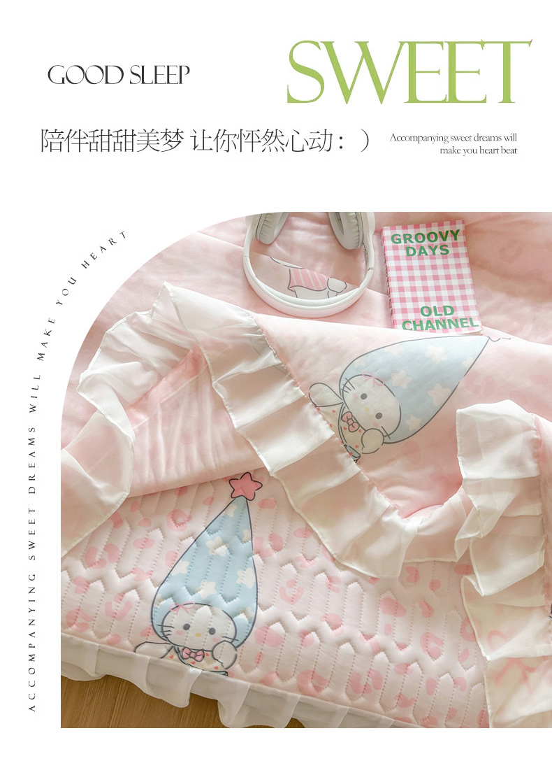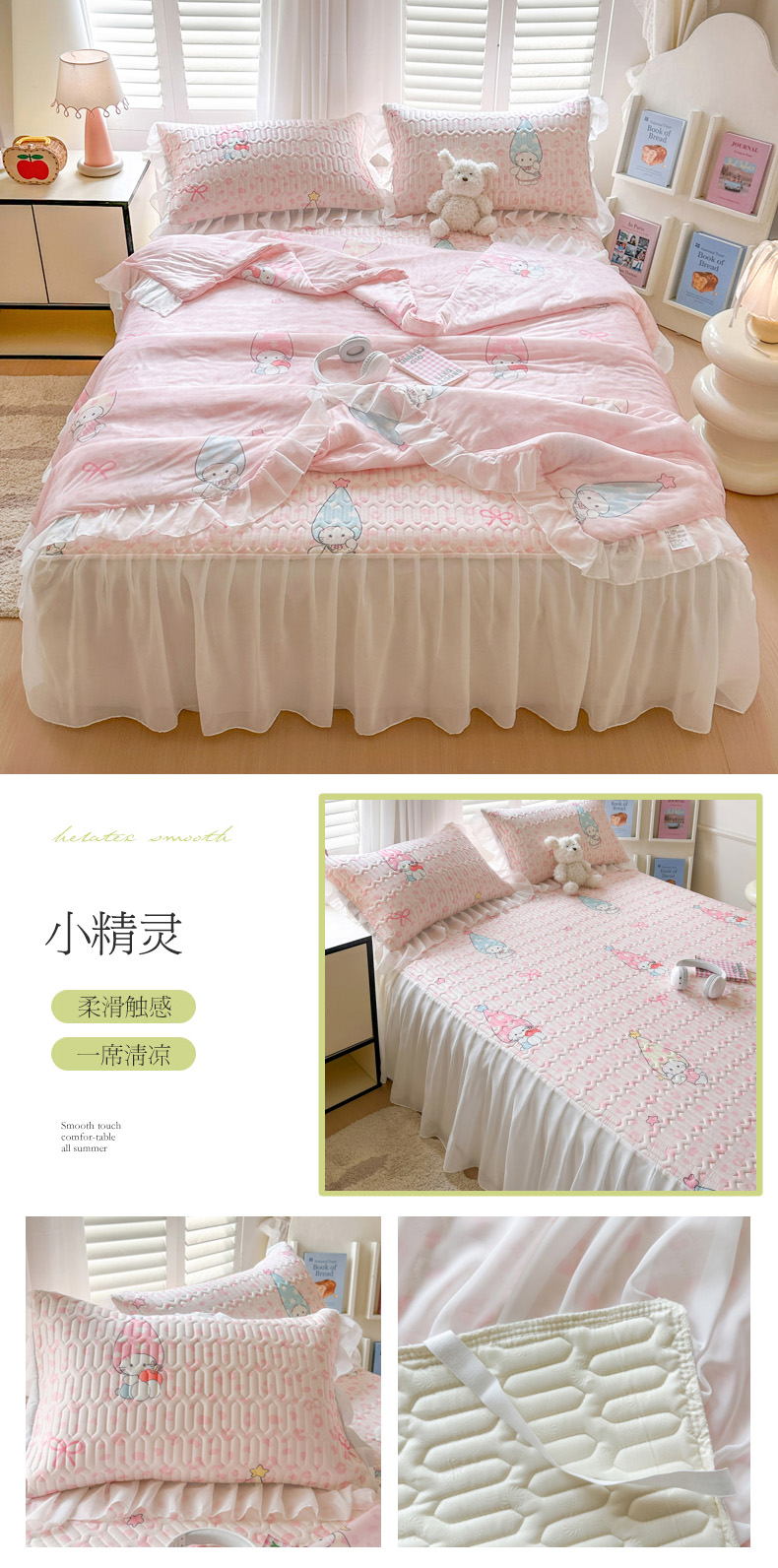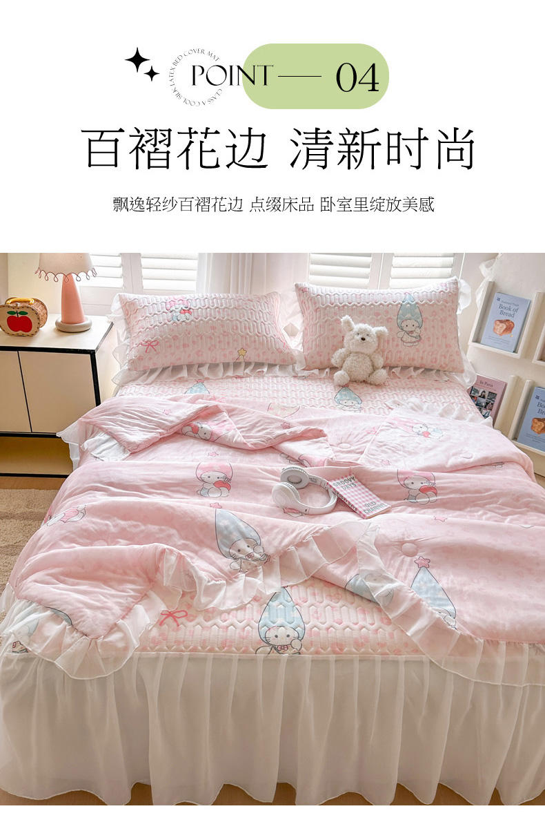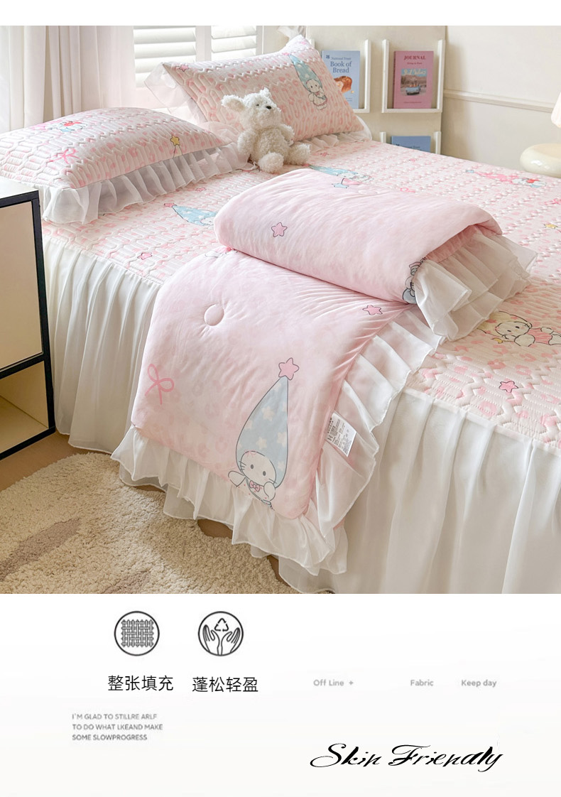 • 91家纺网 家纺一手货源 找家纺 慕澄2026新款小版印花床裙款乳胶凉席凉感丝夏被四件套 小精灵