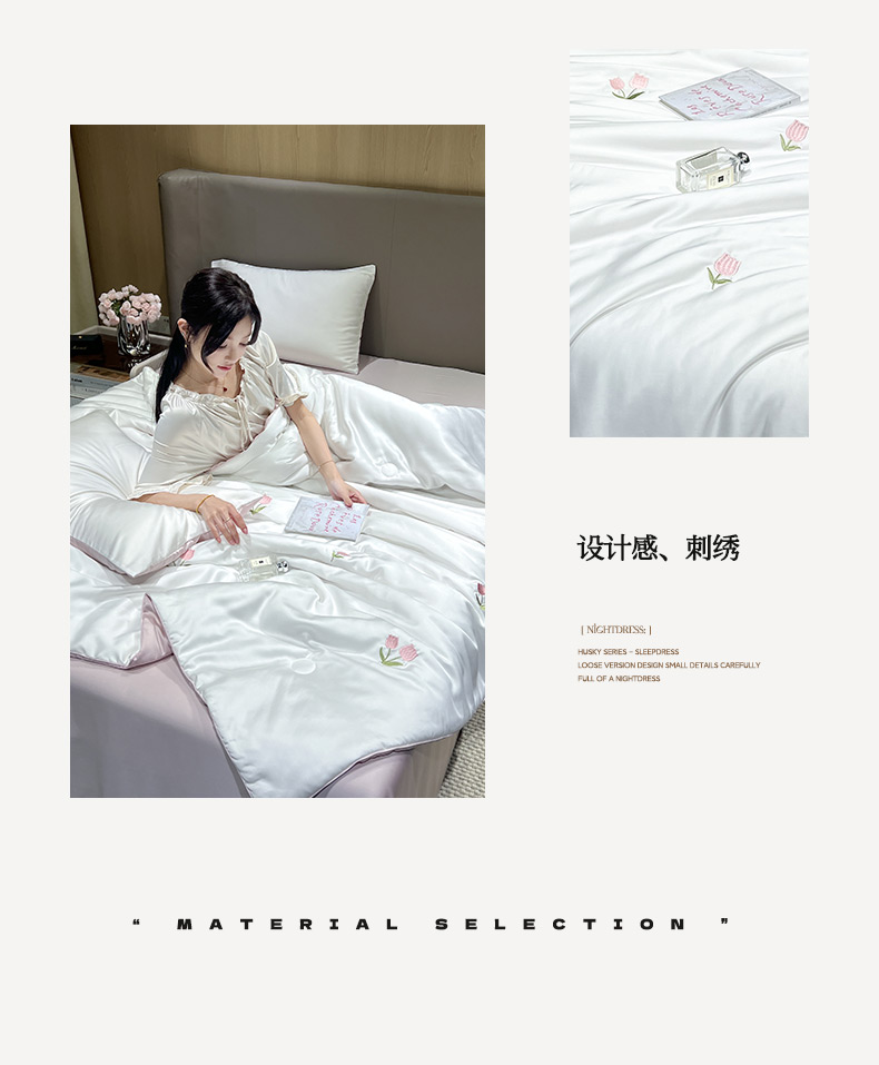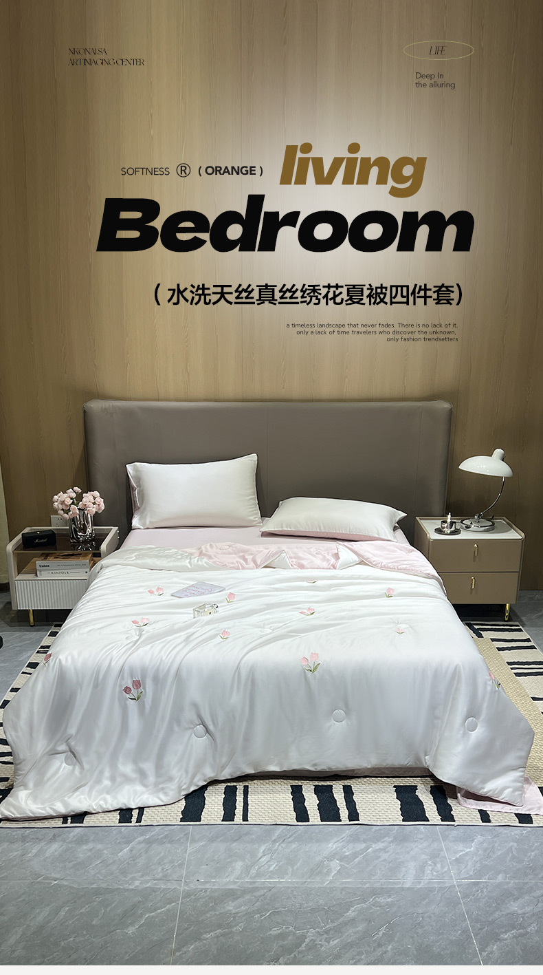当前位置: 91家纺网 > 商品网购 > 床品套件 > 四件套 > 夏被四件套 > 晨曦家纺 2026新款水洗天丝真丝绣花夏被四件套夏凉被高档刺绣 粉郁春野