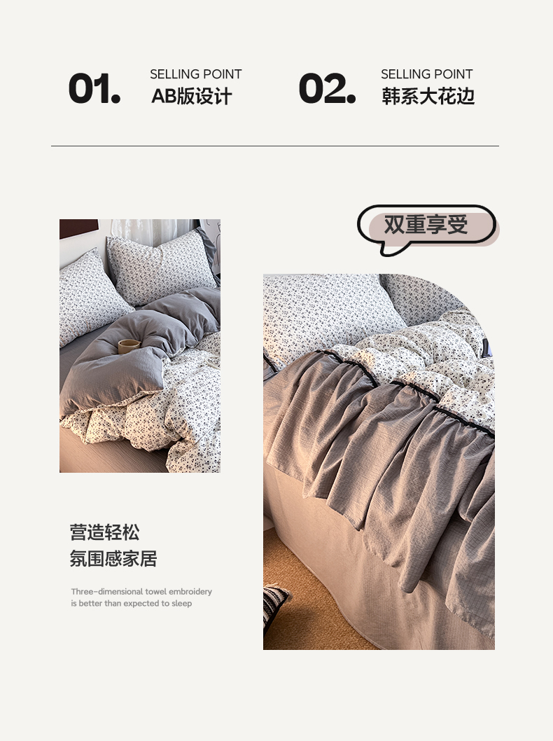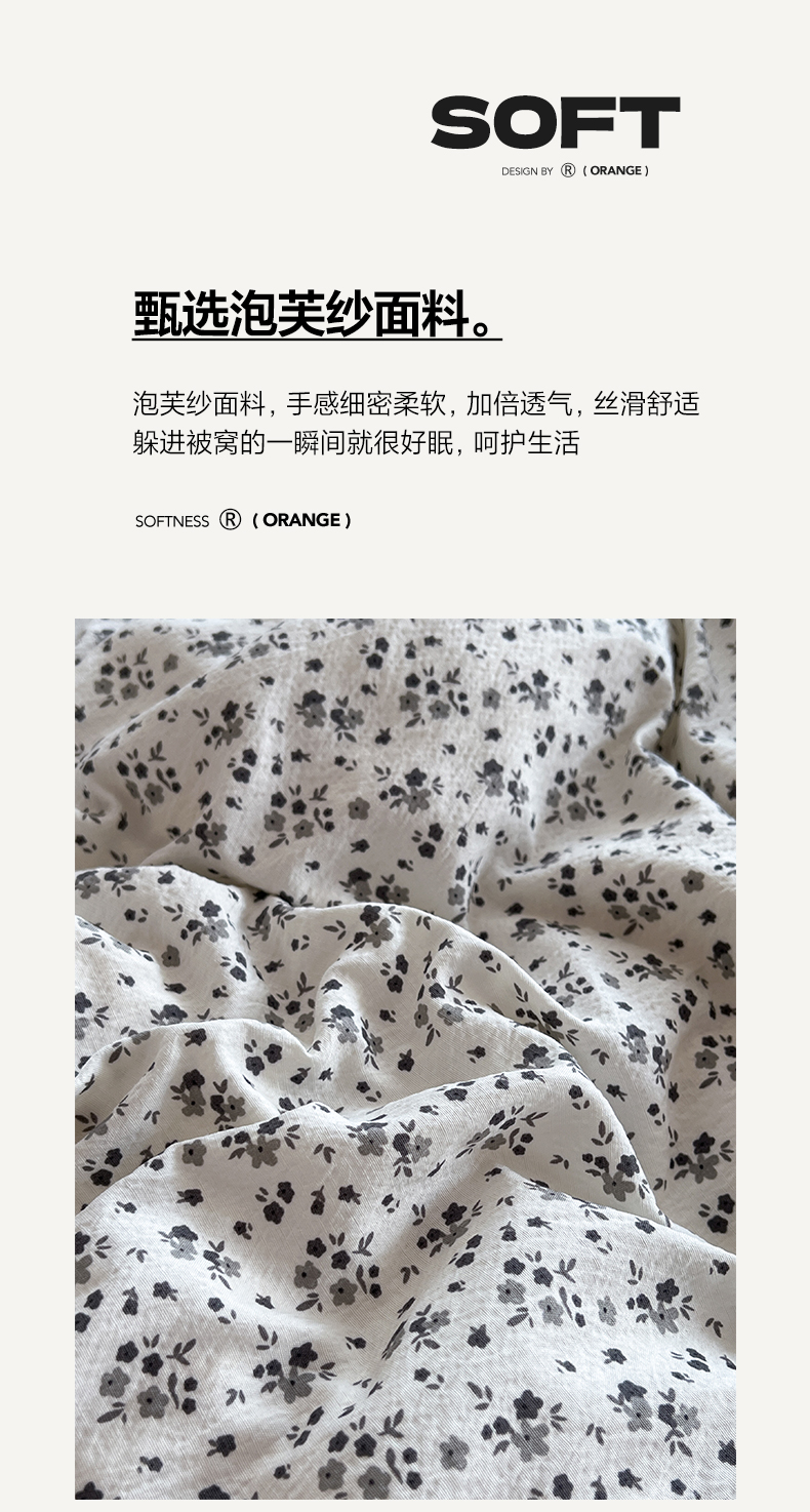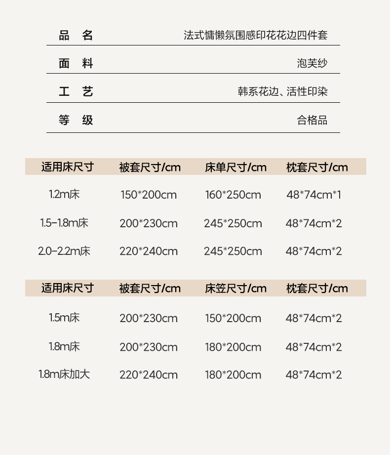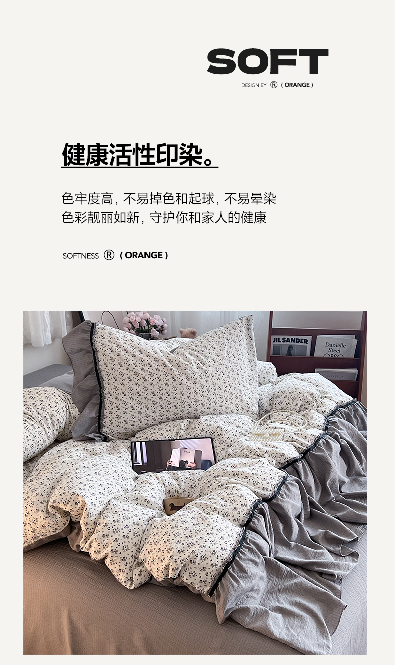 商品名称:晨曦家纺 2026新款韩系法式慵懒氛围感印花泡芙花边四件套 雾灰庄园