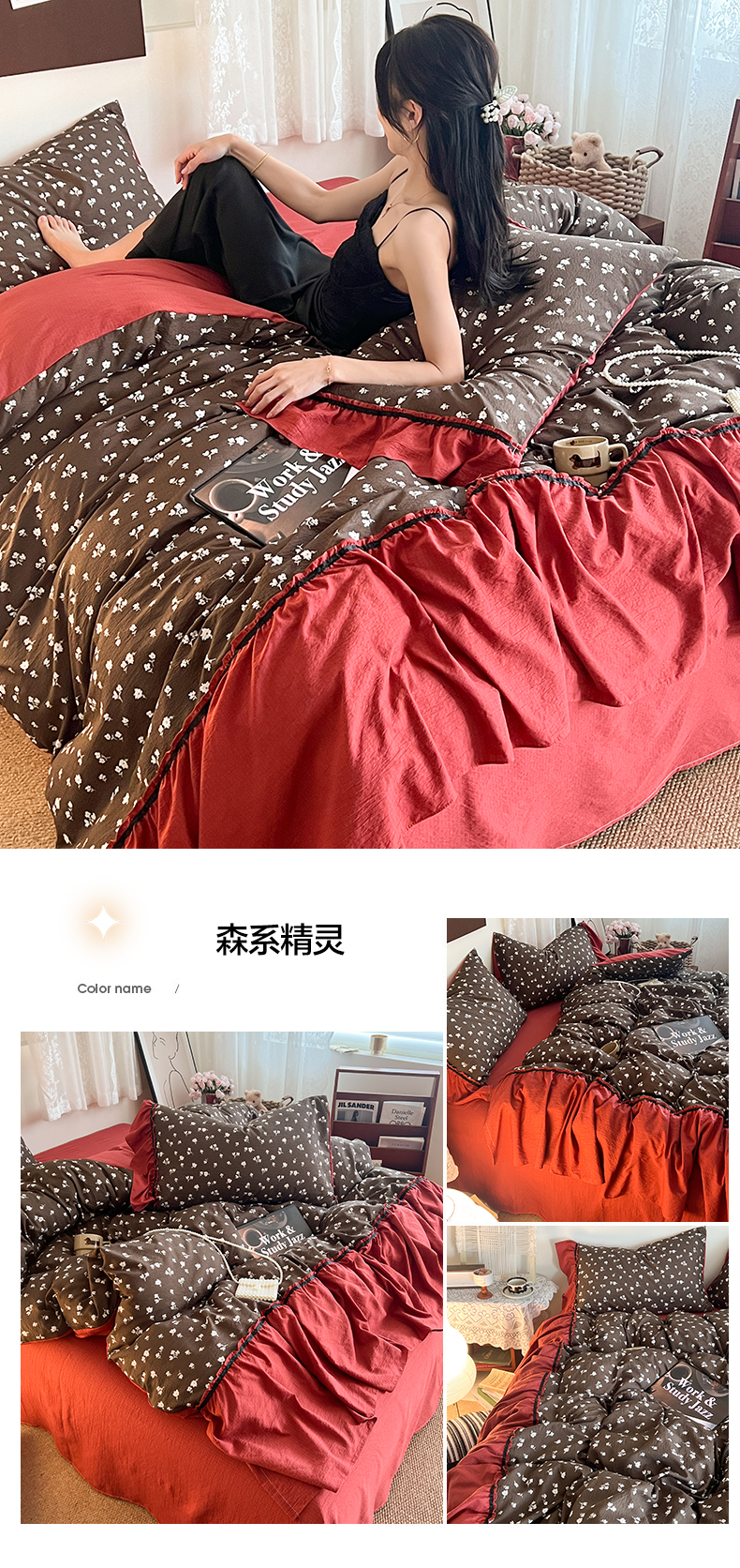 (总)晨曦家纺 2026新款韩系法式慵懒氛围感印花泡芙花边四件套,红莓花信,布朗花影,可可花舞,森系精灵,雾灰庄园