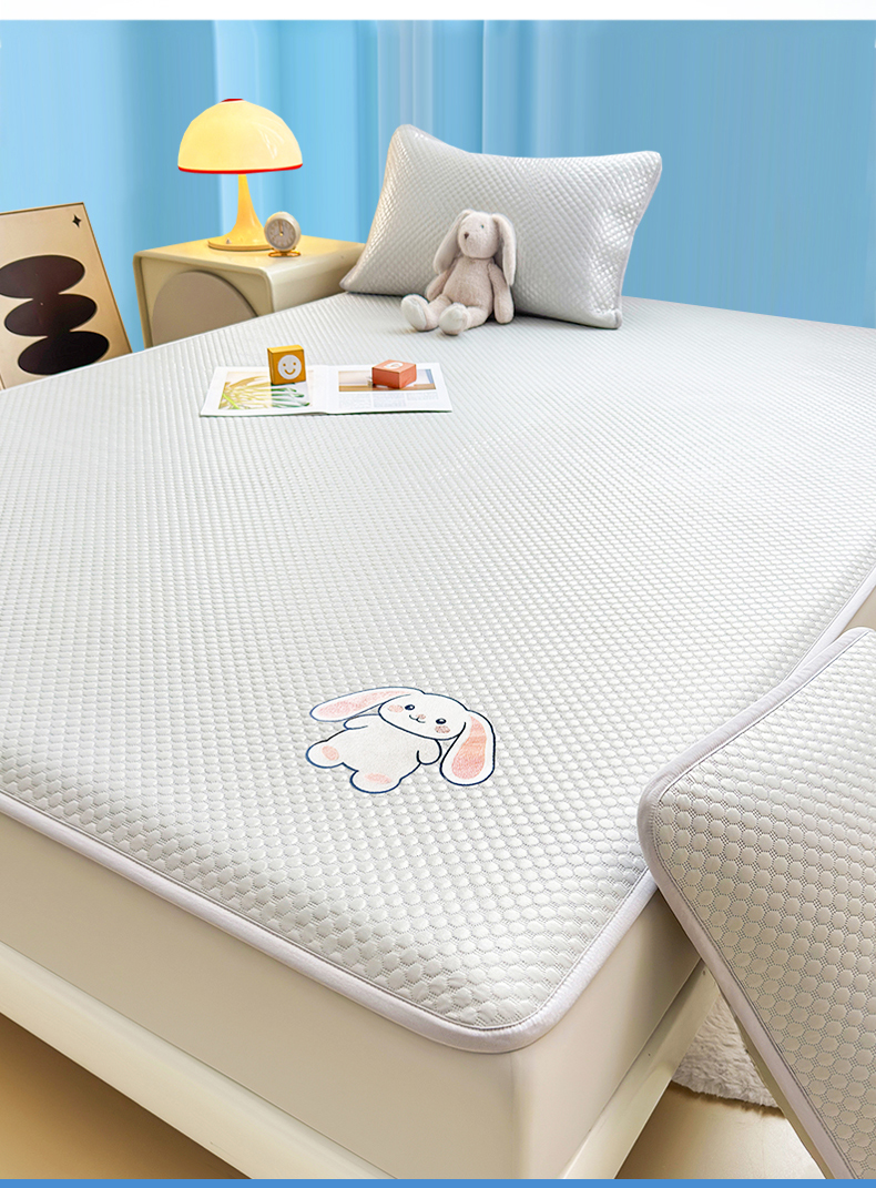 雯豆家纺 2026新款夏季绣花三明治凉豆豆压花床笠三件套加厚床罩床垫保护套 大耳朵兔床笠款-银灰