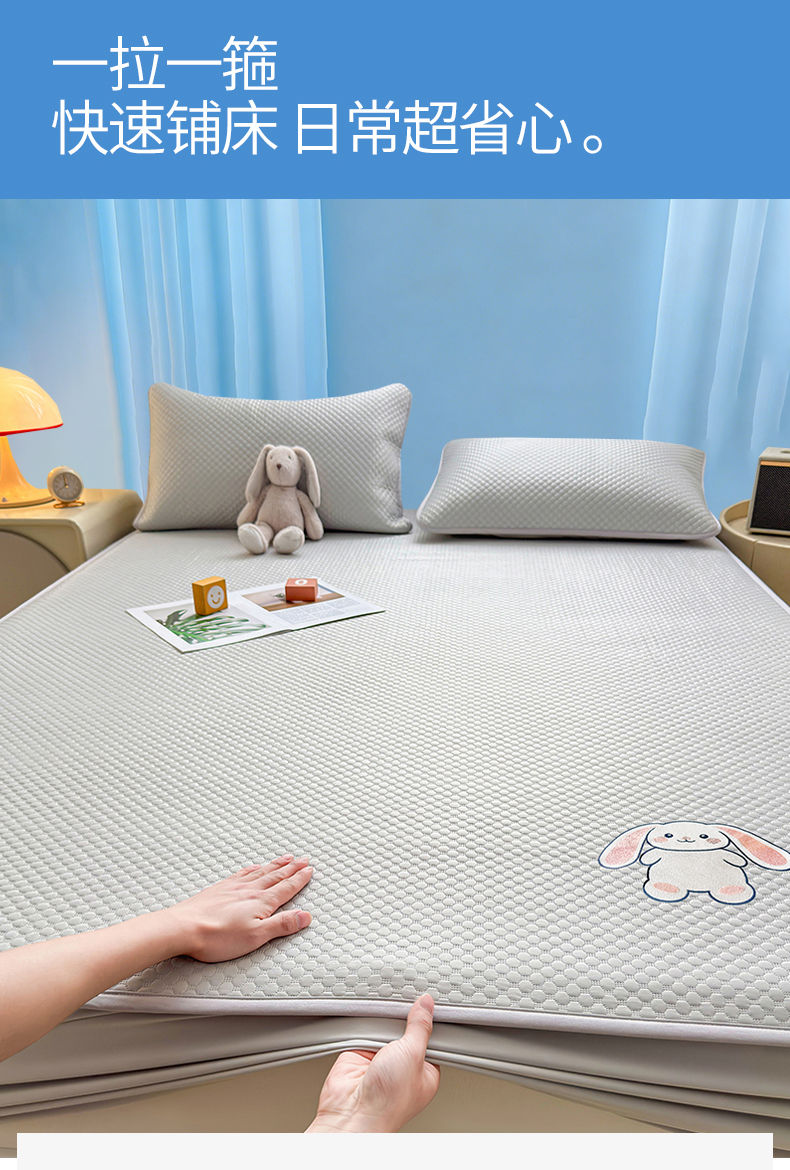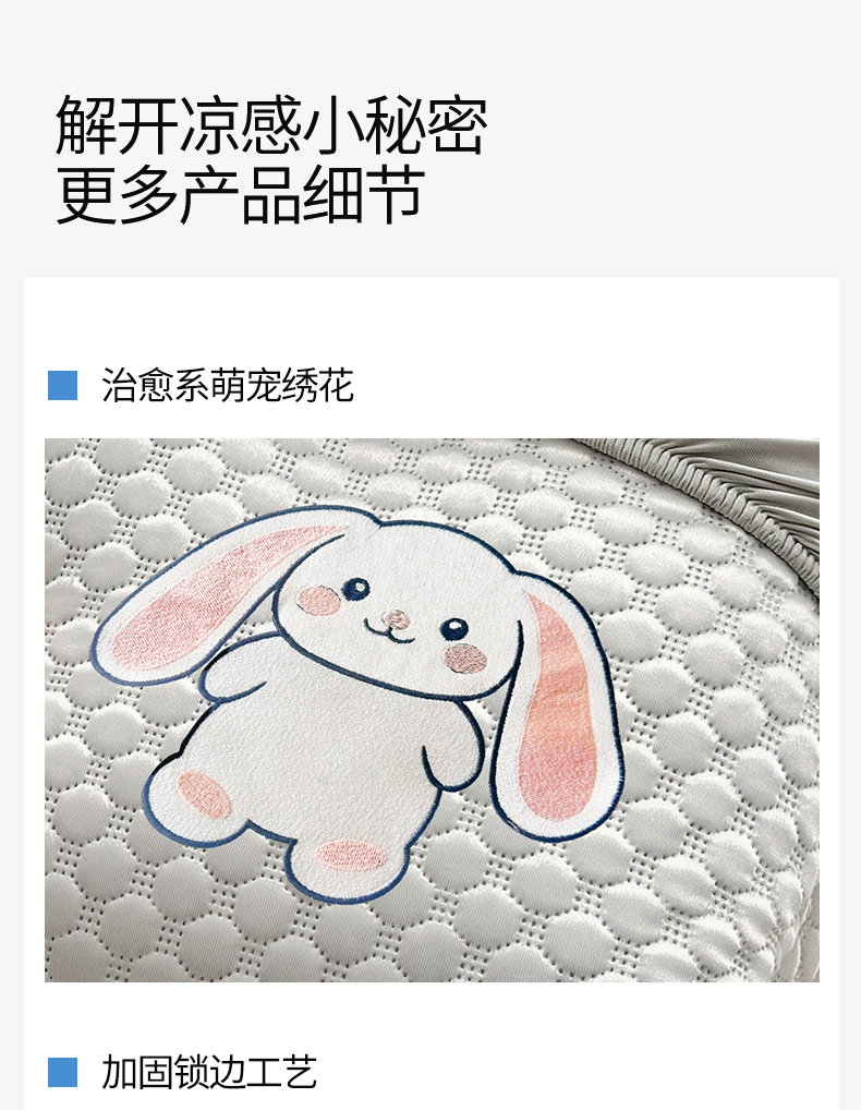• 91家纺网 家纺一手货源 找家纺 雯豆家纺 2026新款夏季绣花三明治凉豆豆压花床笠三件套加厚床罩床垫保护套 大耳朵兔床笠款-银灰