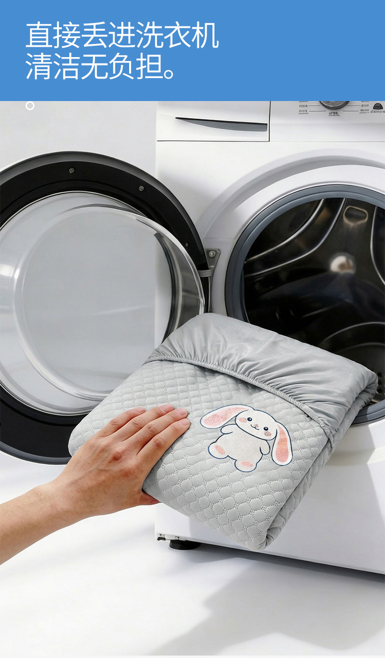 当前位置: 91家纺网 > 商品网购 > 床上用品 > 床笠 > 雯豆家纺 2026新款夏季绣花三明治凉豆豆压花床笠三件套加厚床罩床垫保护套 大耳朵兔床笠款-银灰