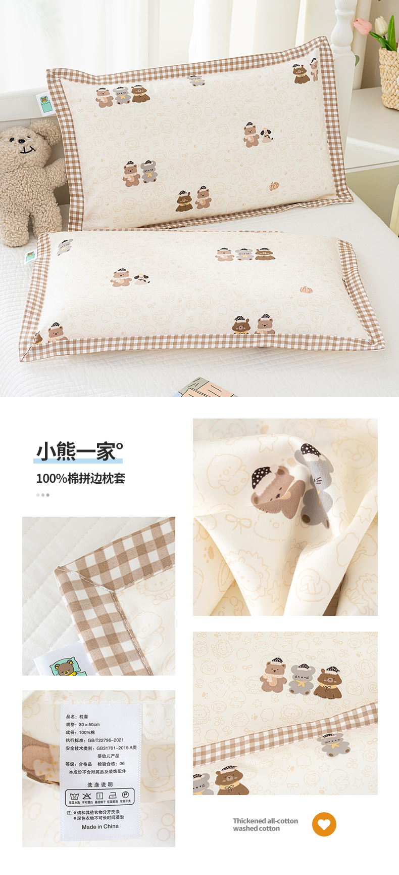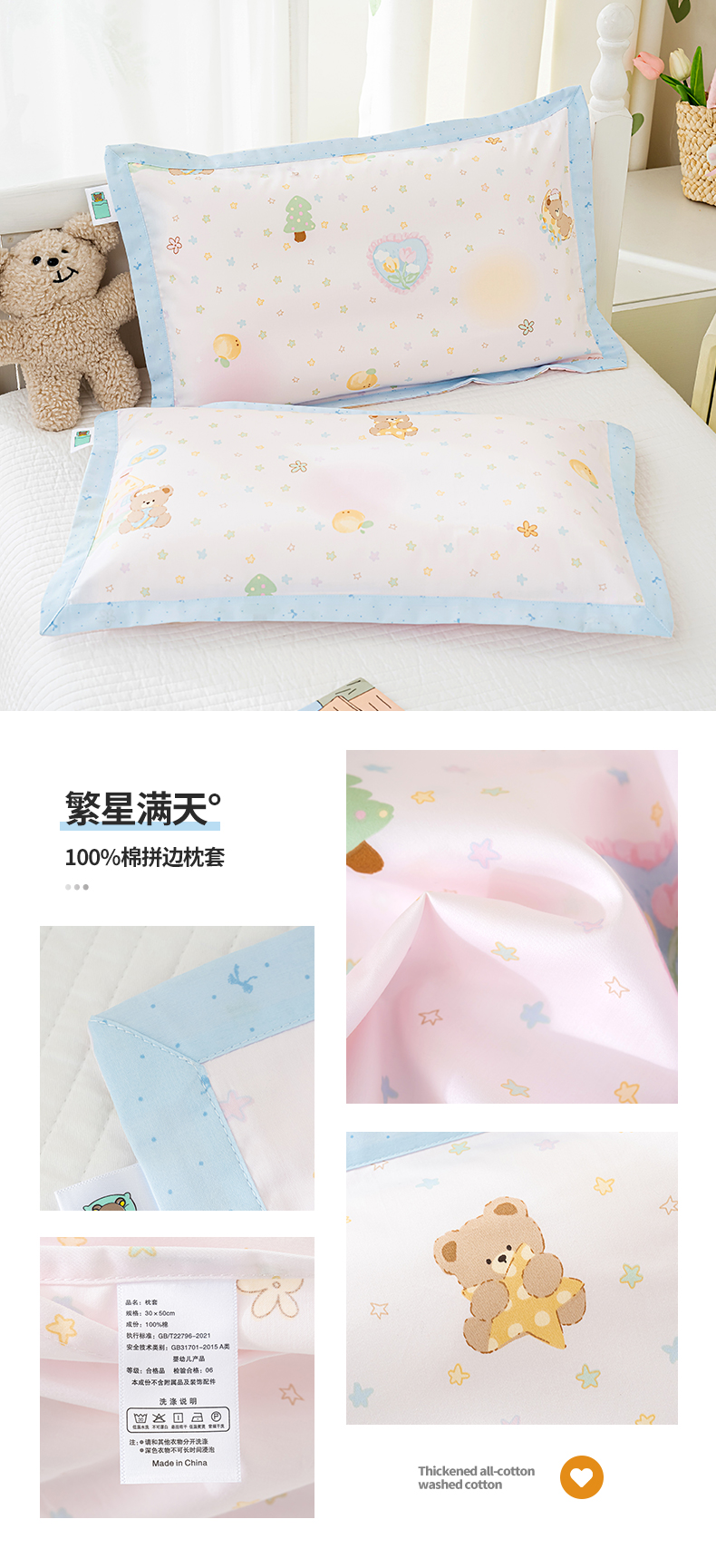 (总)良佐生活 2026年新款铂金全棉压线枕套,甜心熊,布布,调皮象,福宝,乐兔粉,乐兔蓝,太空探险,挖机小分队